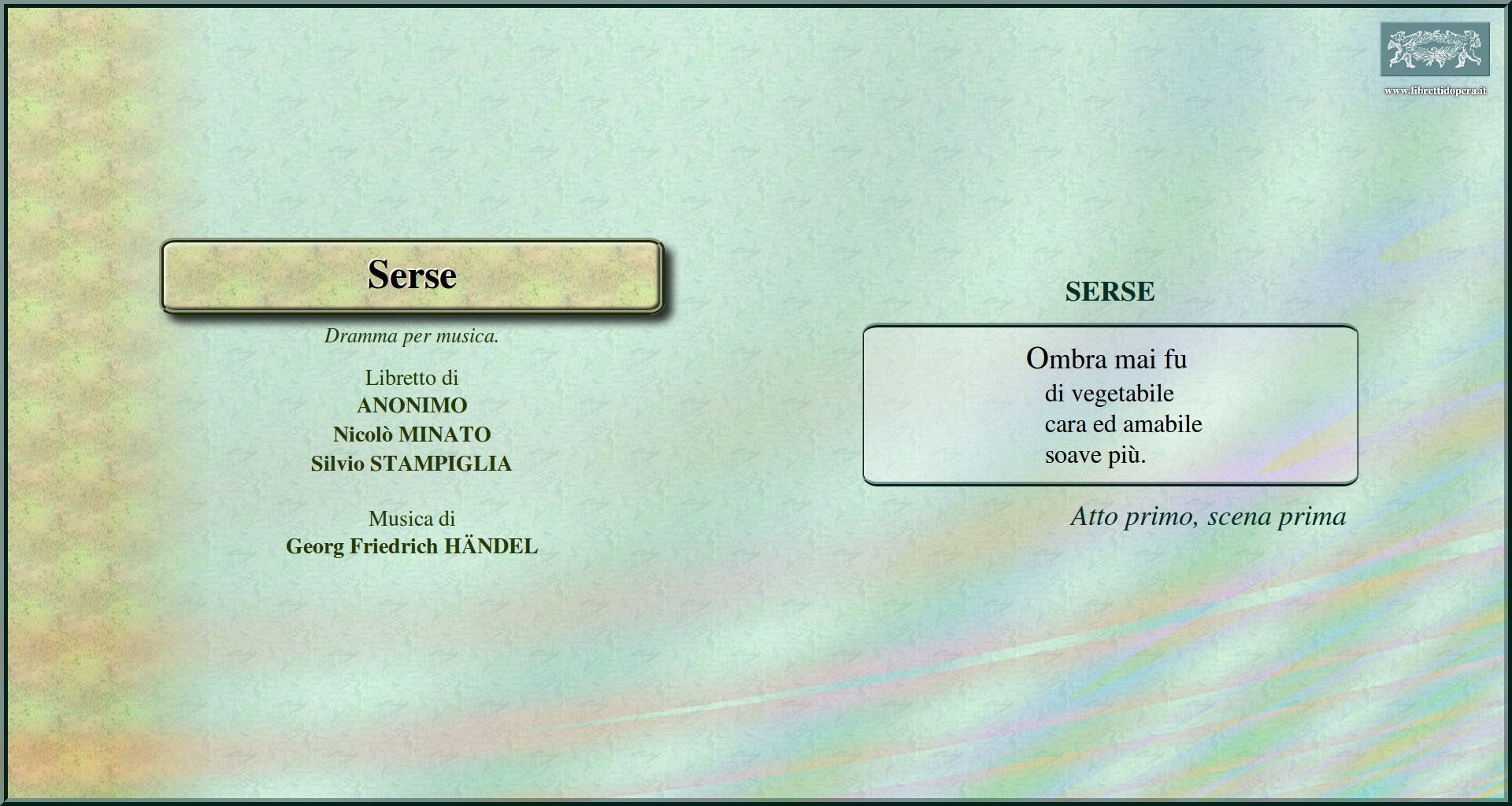 Ombra mai fu No, se tu mi sprezzi Crude furie degl'orridi abissi
