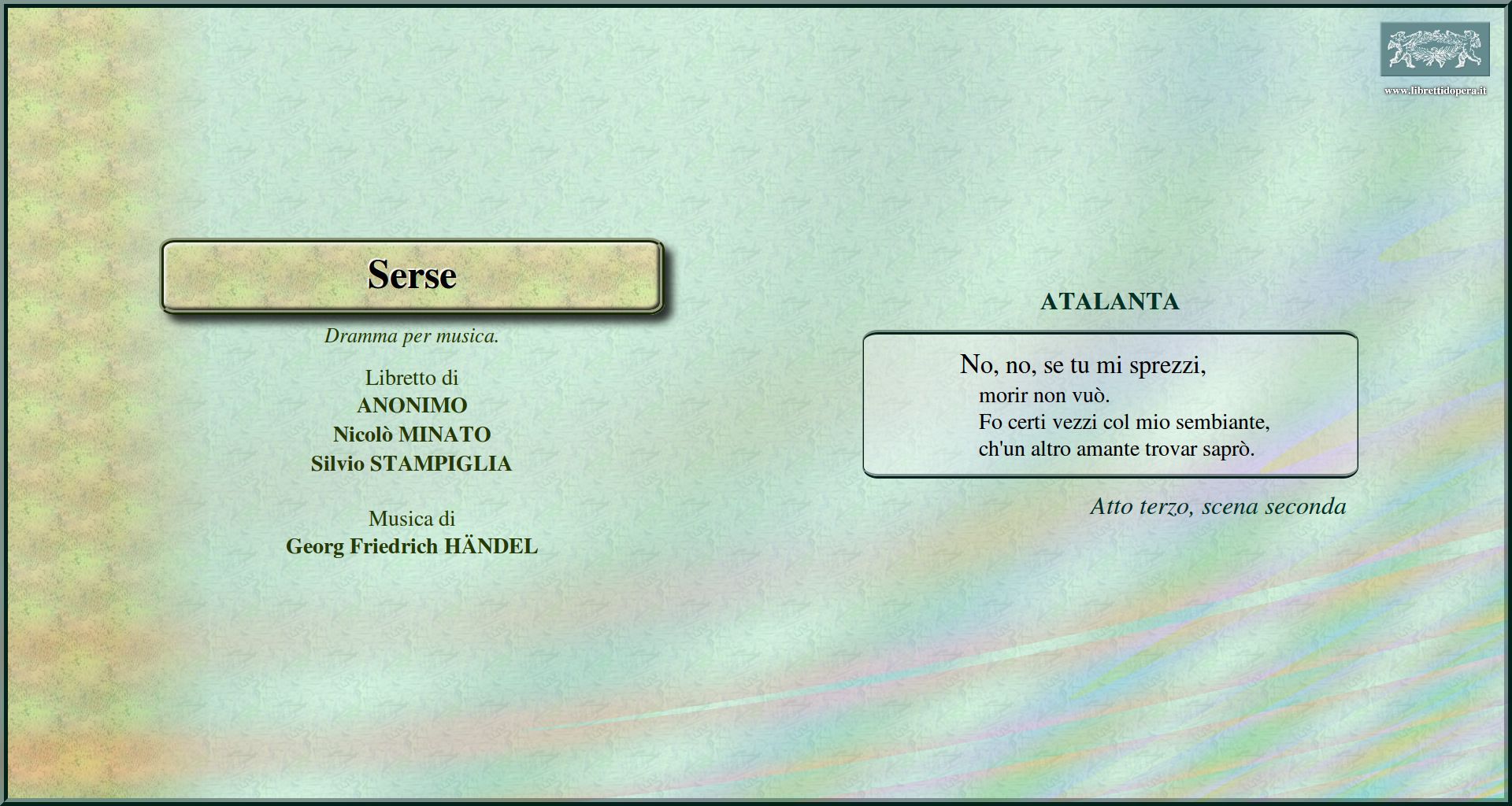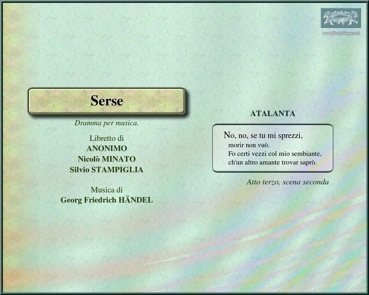 Ombra mai fu No, se tu mi sprezzi Crude furie degl'orridi abissi