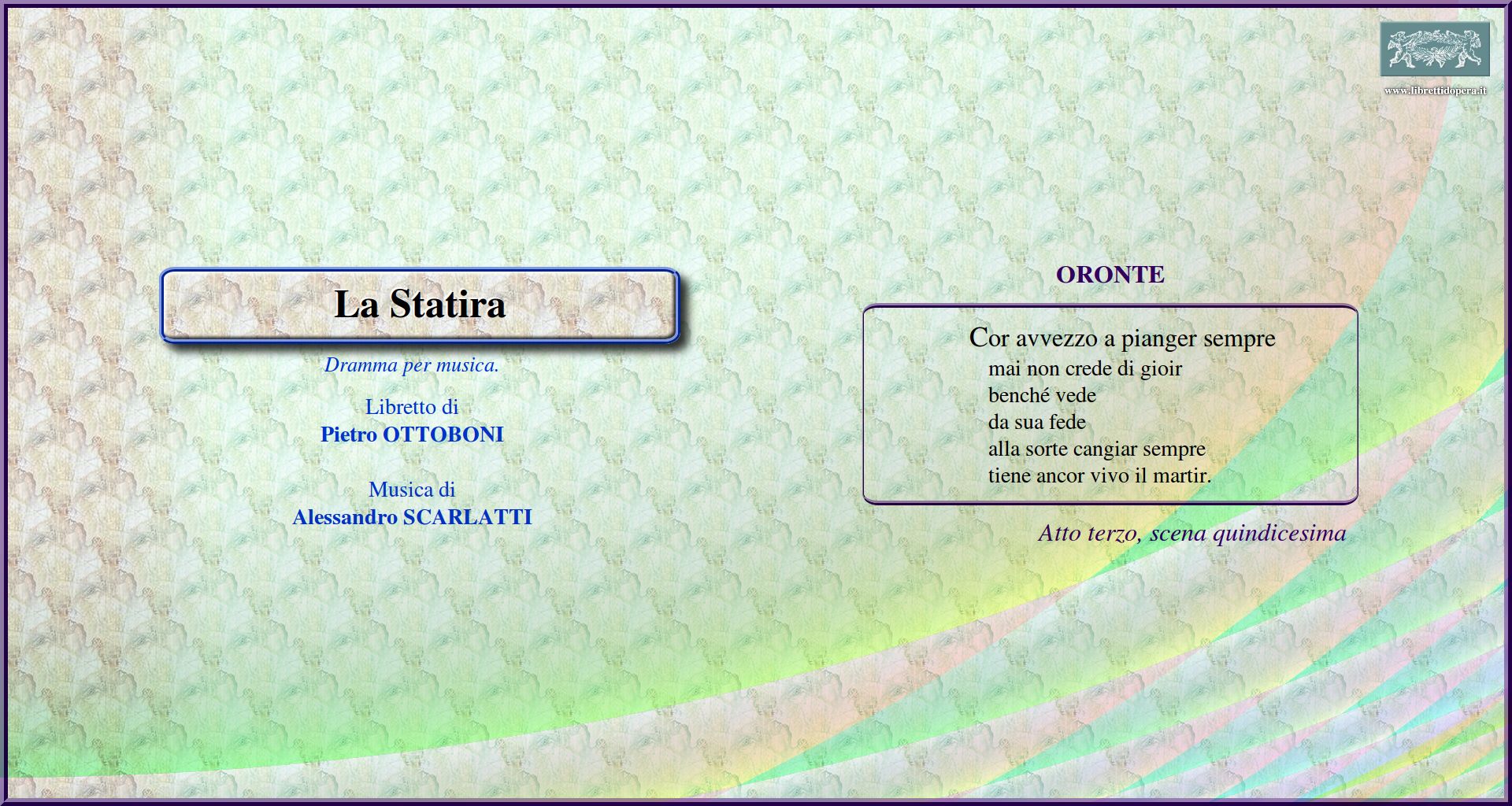 Mi consiglio col mio core Chi a volo tropp'alto Cor avvezzo a pianger sempre