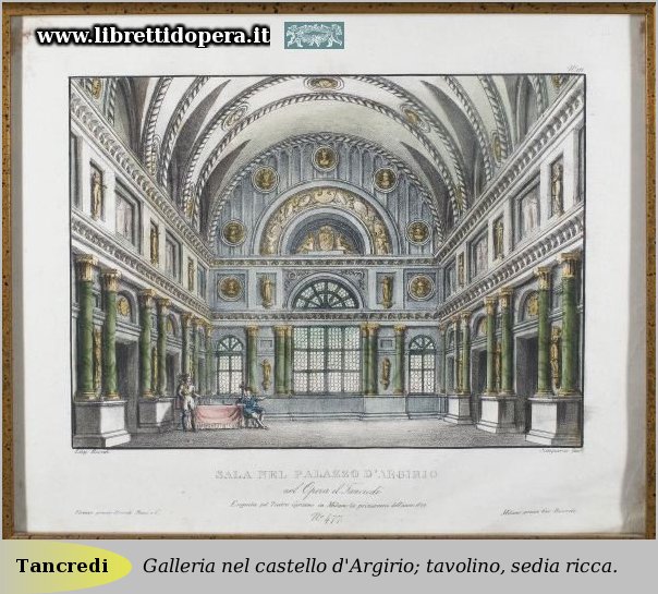 Scena undicesima Tancredi che avrà udita parte del coro, fremente, desolato; Roggiero, che lo segue.