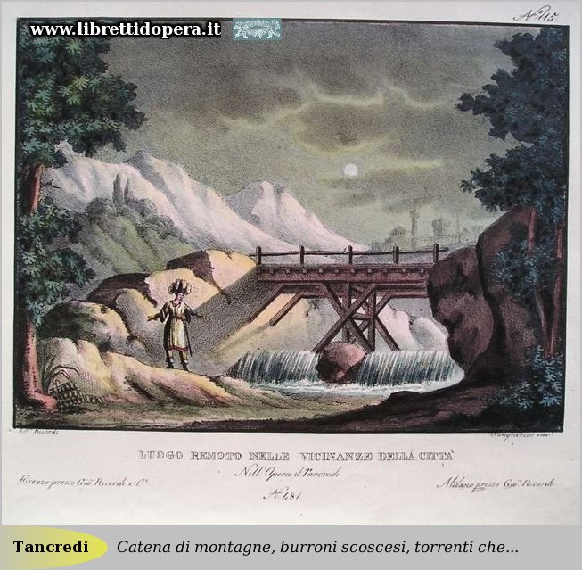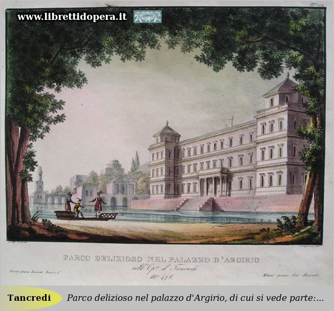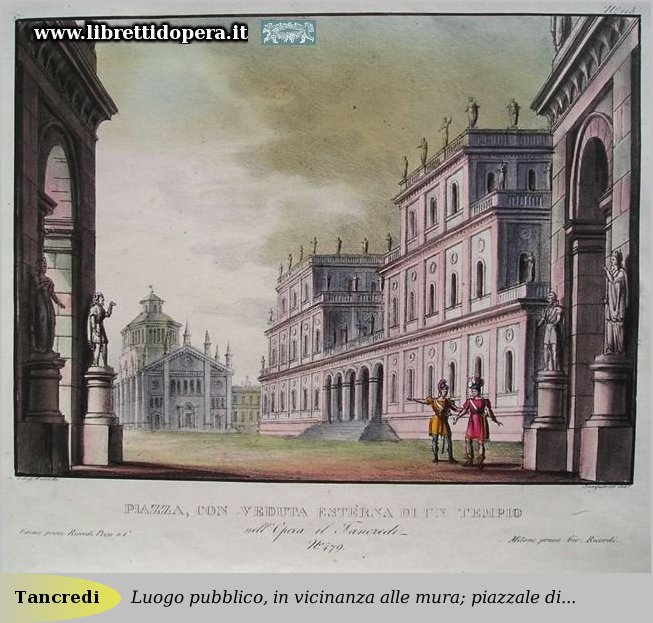 (+) Variante del finale Finale modificato nella rappresentazione di Firenze del 1813. Dopo la cavatina di Tancredi della scena XVI del secondo atto (la XIV nella variante) si prosegue con il seguente testo:
