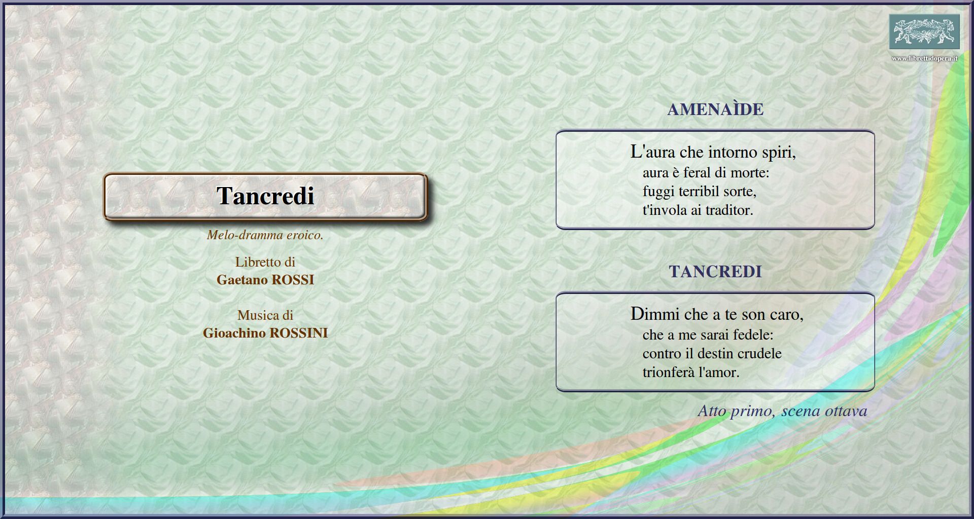 L'aura che intorno spiri Ah sì mora, e cessi omai Ah! che scordar non so