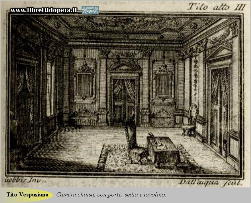 Scena nona Vitellia, uscendo dalla porta opposta, richiama Publio, che seguiva Tito.