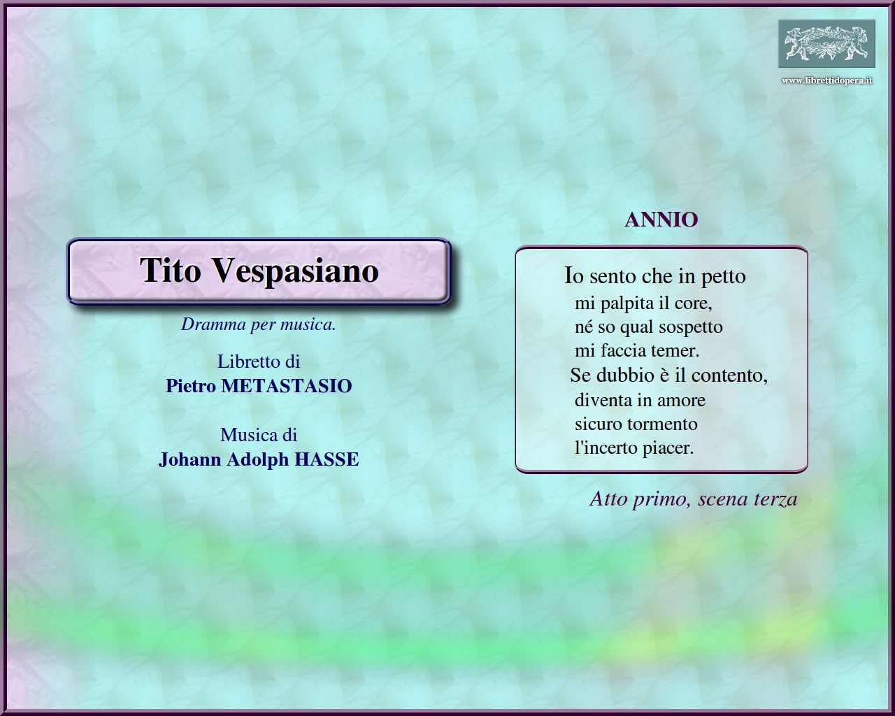 Io sento che in petto Tremo fra' dubbi miei Se all'impero, amici dèi