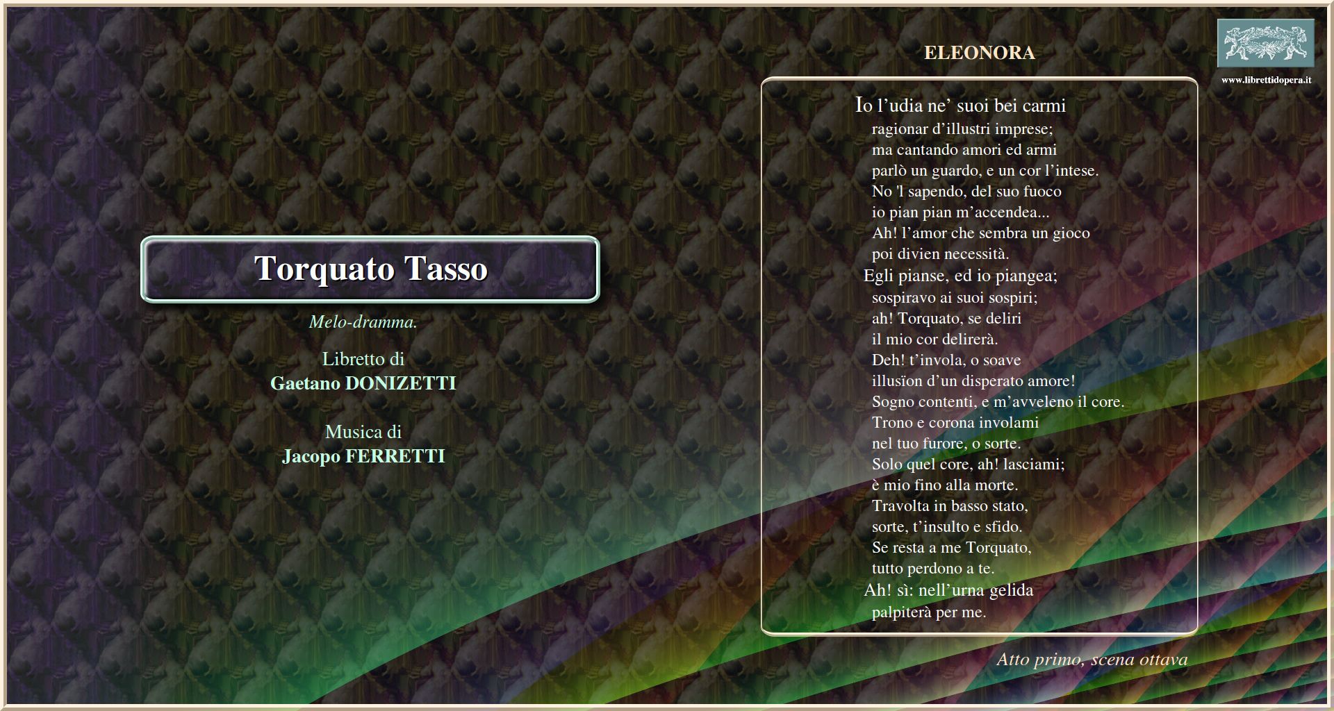 Io l'udia ne' suoi bei carmi O tu, che danni amore Perché dell'aure in sen