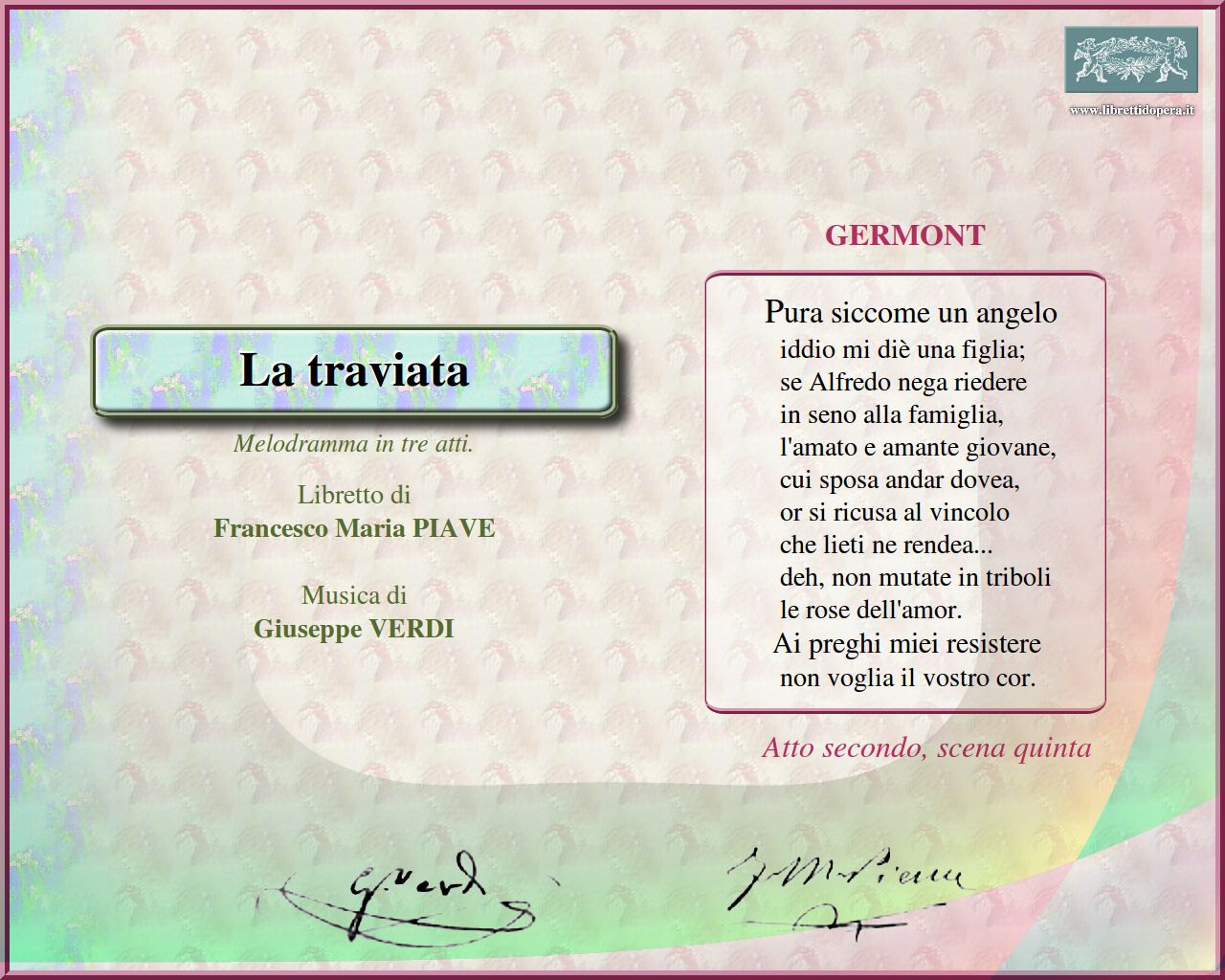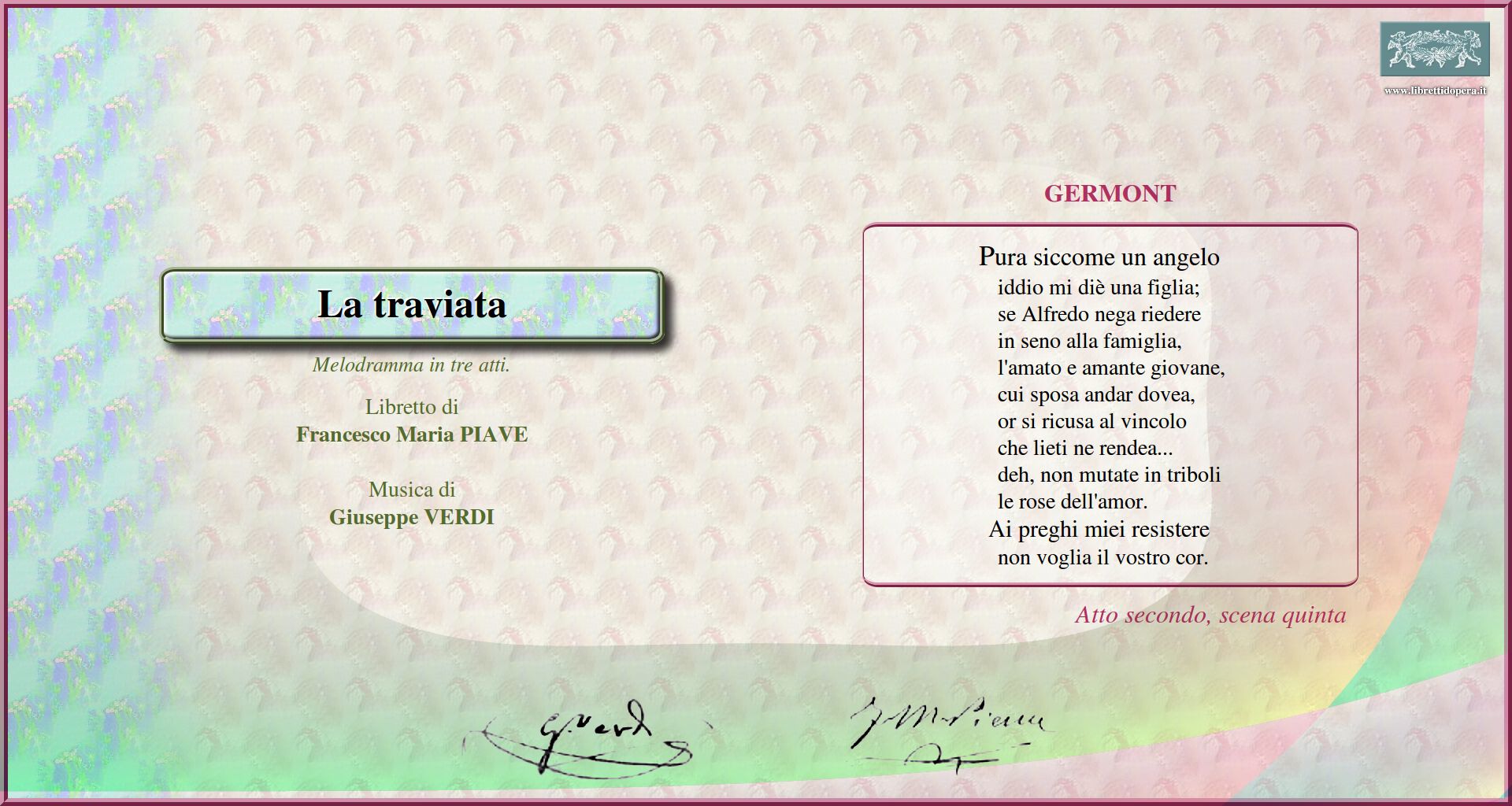 vai a posizione nel testo del libretto