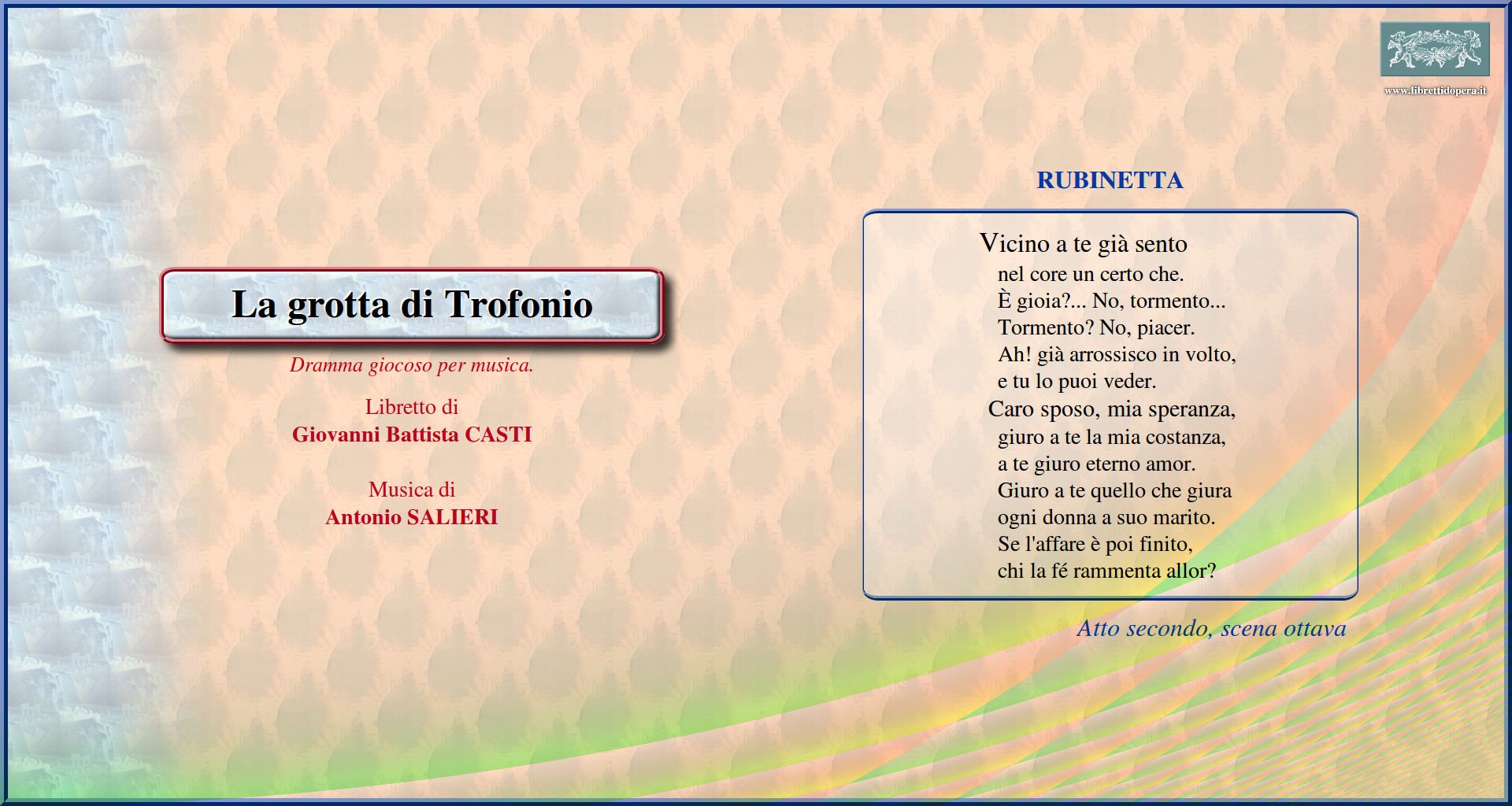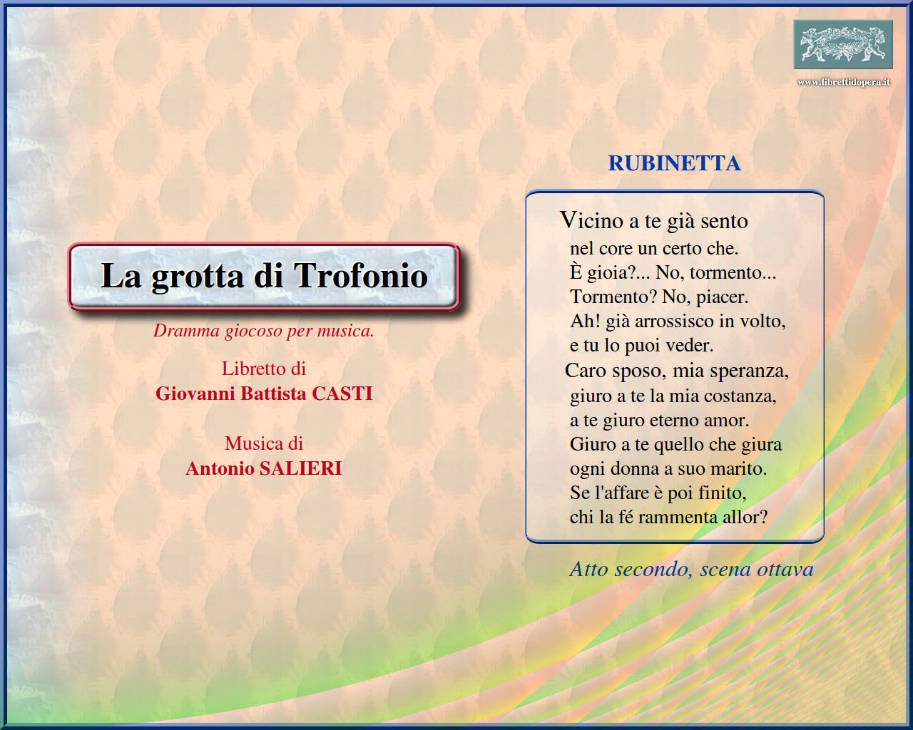 In udir quei cari accenti Oggidì nel mondo bello Vicino a te già sento Si vuol saper chi sono? Augelletti e fiumicelli