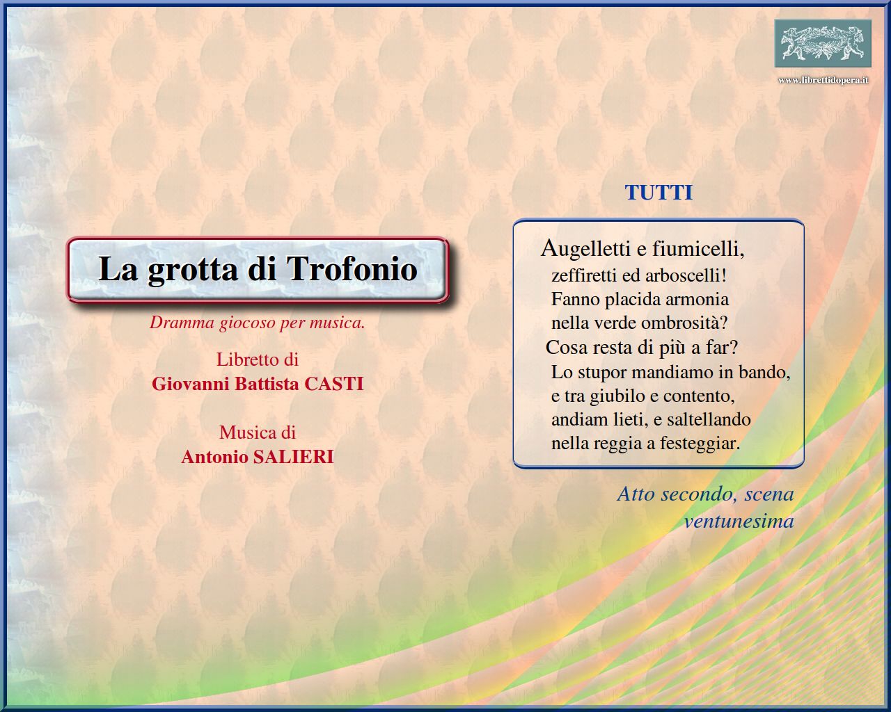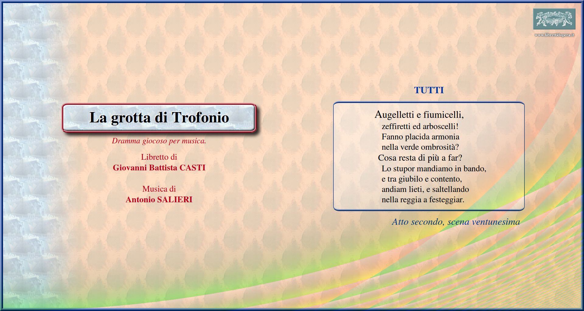 In udir quei cari accenti Oggidì nel mondo bello Vicino a te già sento Si vuol saper chi sono? Augelletti e fiumicelli