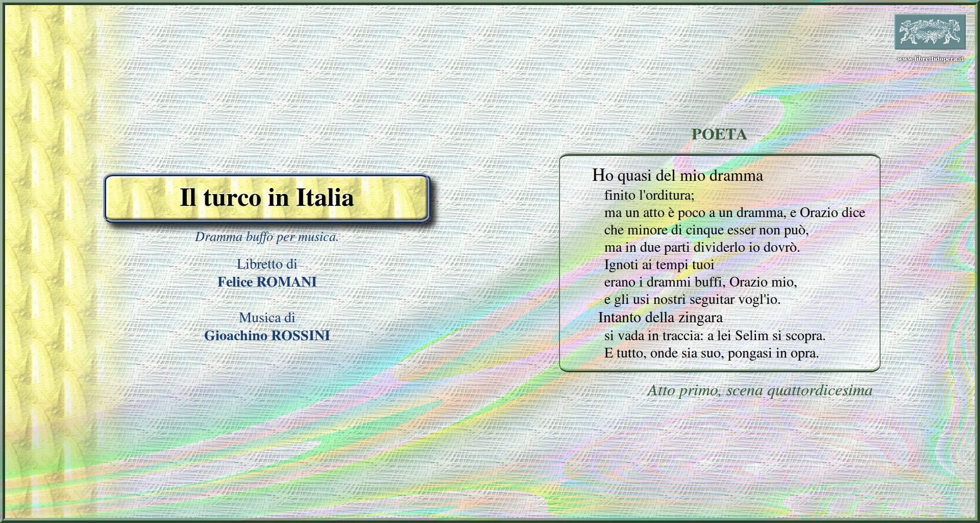 Cara Italia, alfin ti miro Ho quasi del mio dramma D'un bell'uso di Turchia Restate contenti