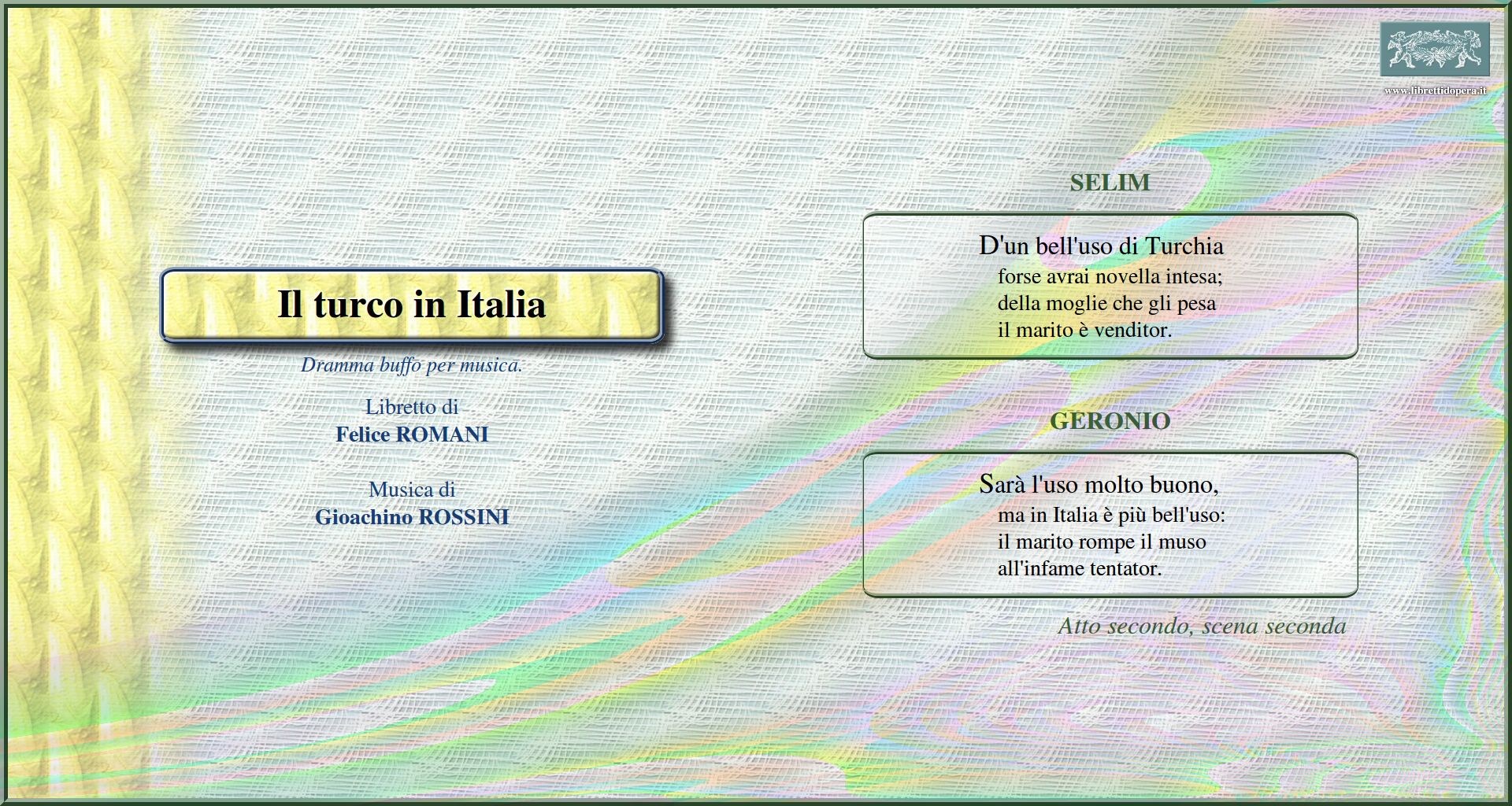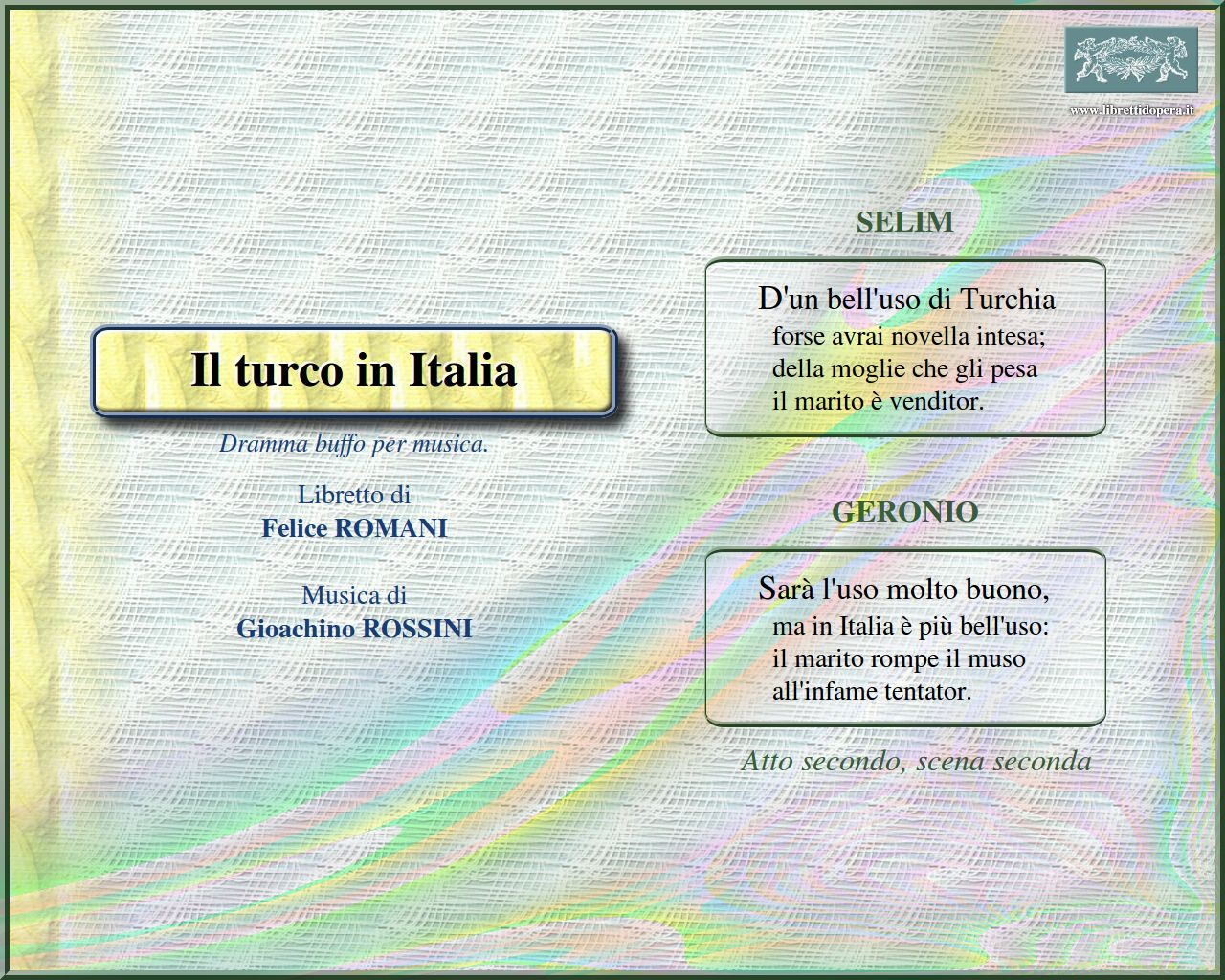 Cara Italia, alfin ti miro Ho quasi del mio dramma D'un bell'uso di Turchia Restate contenti