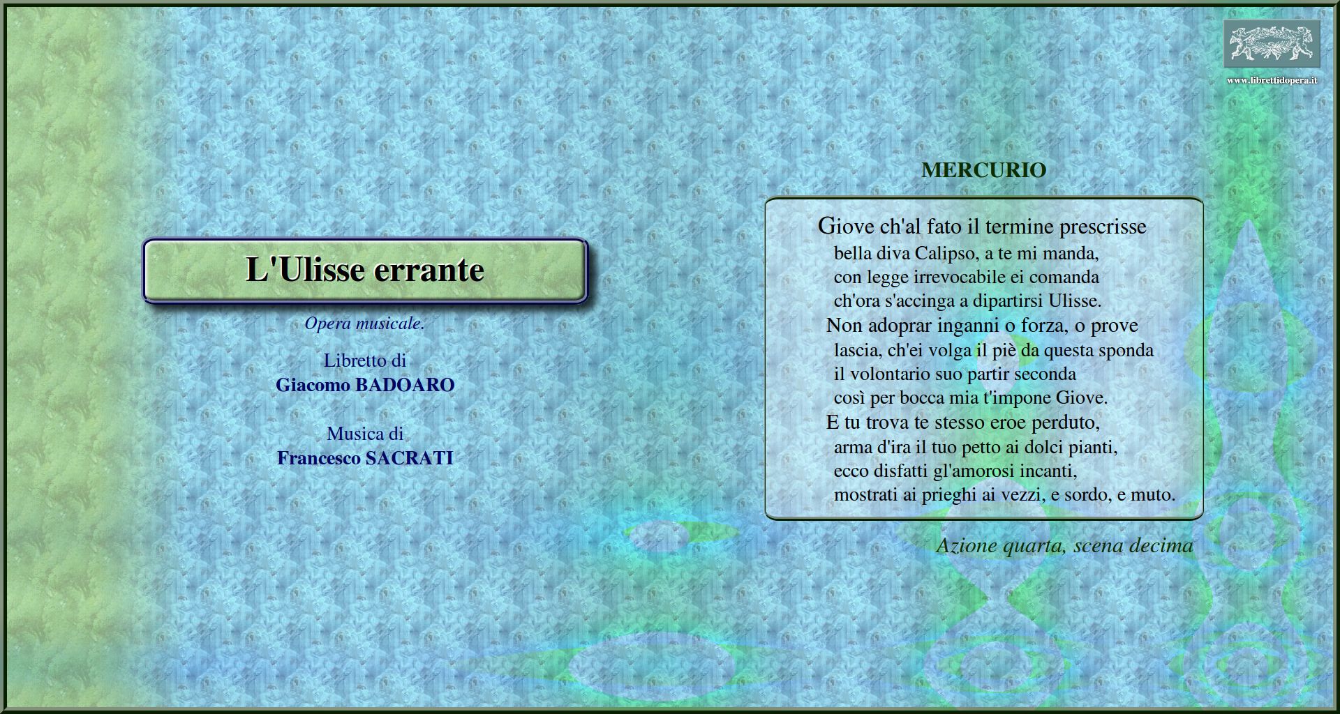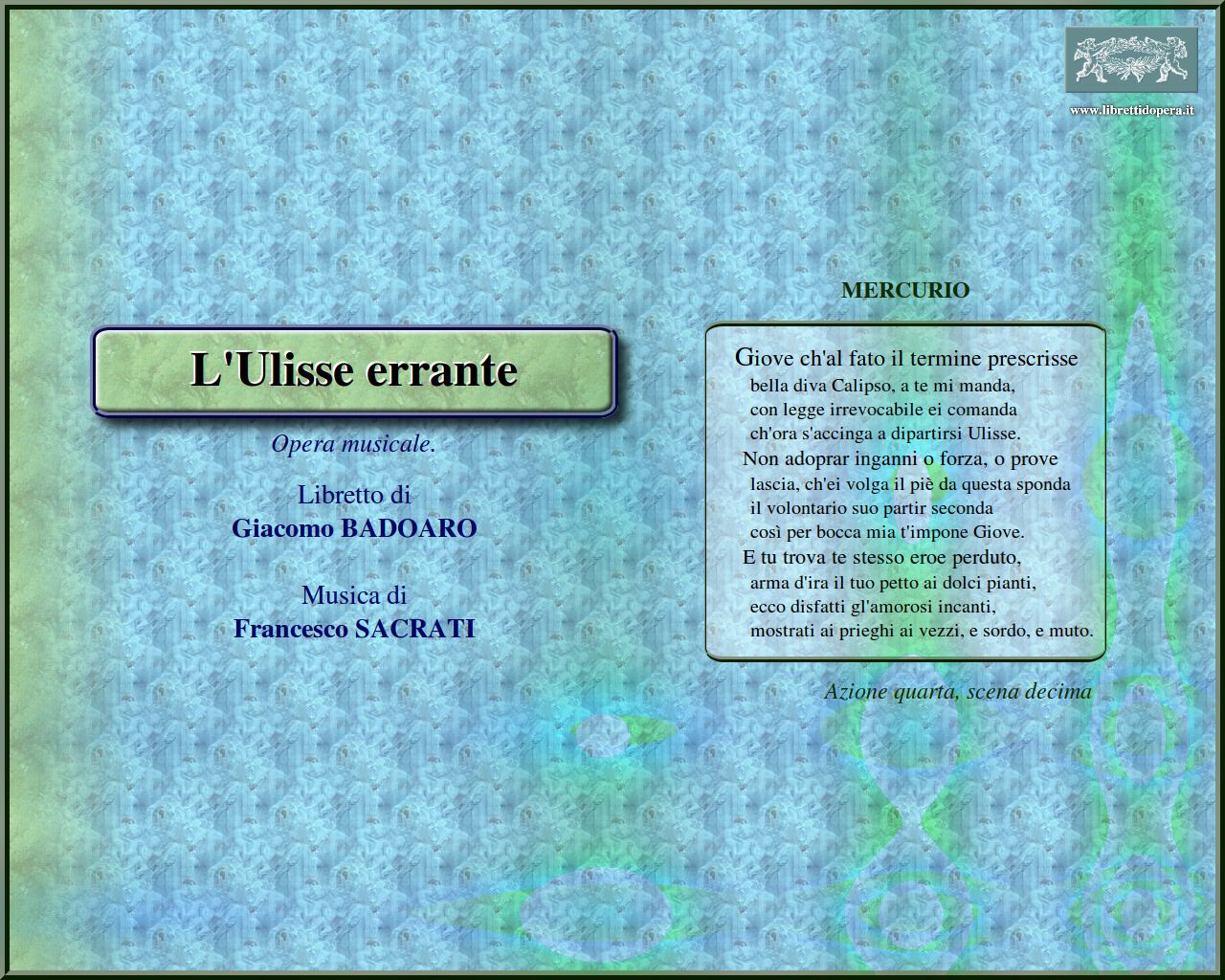 Augelletti sussurrate Ulisse ah non partir, deh non partire Amanti mirate Giove ch'al fato il termine prescrisse Oh che giubilo sente il core