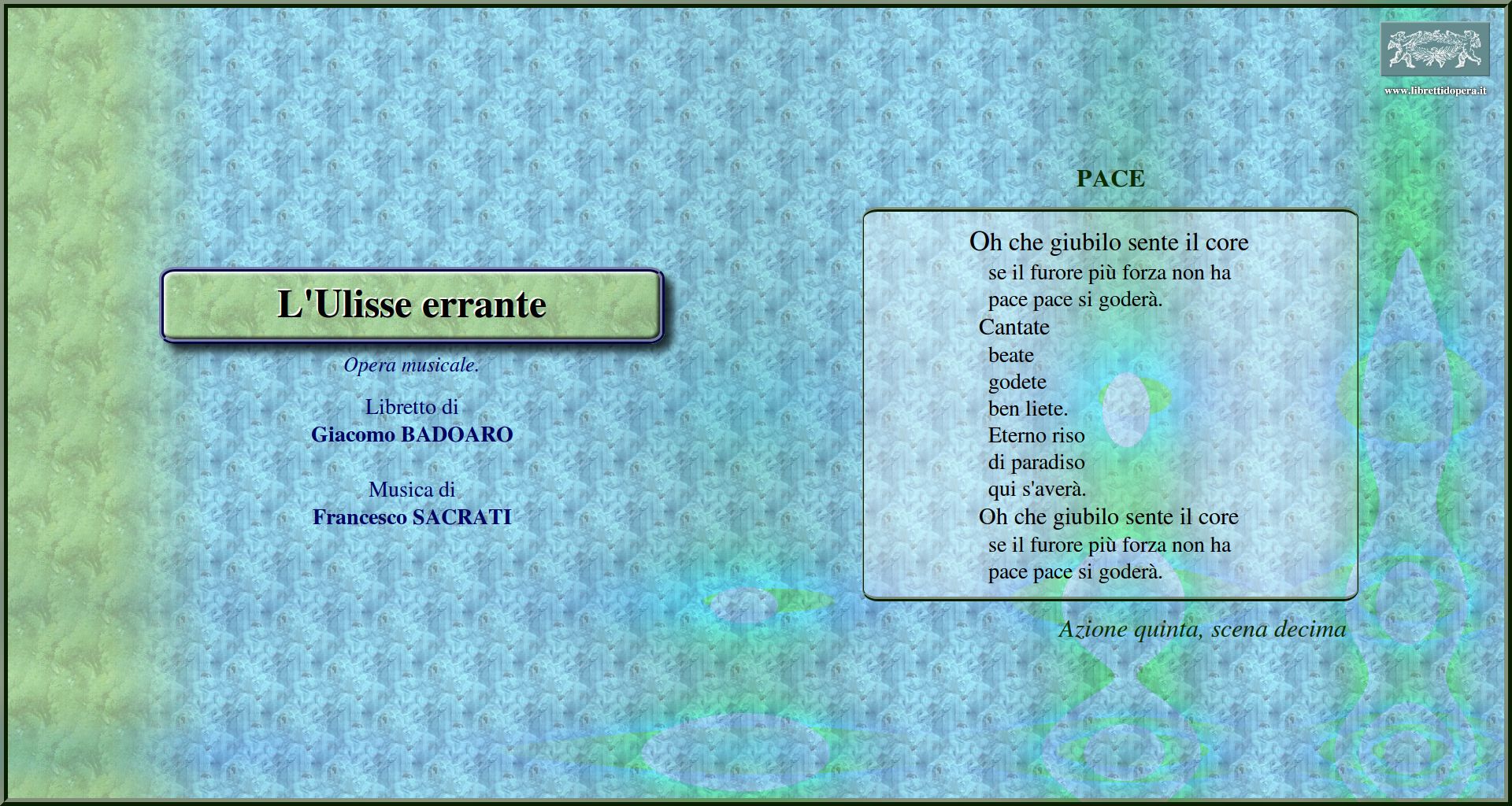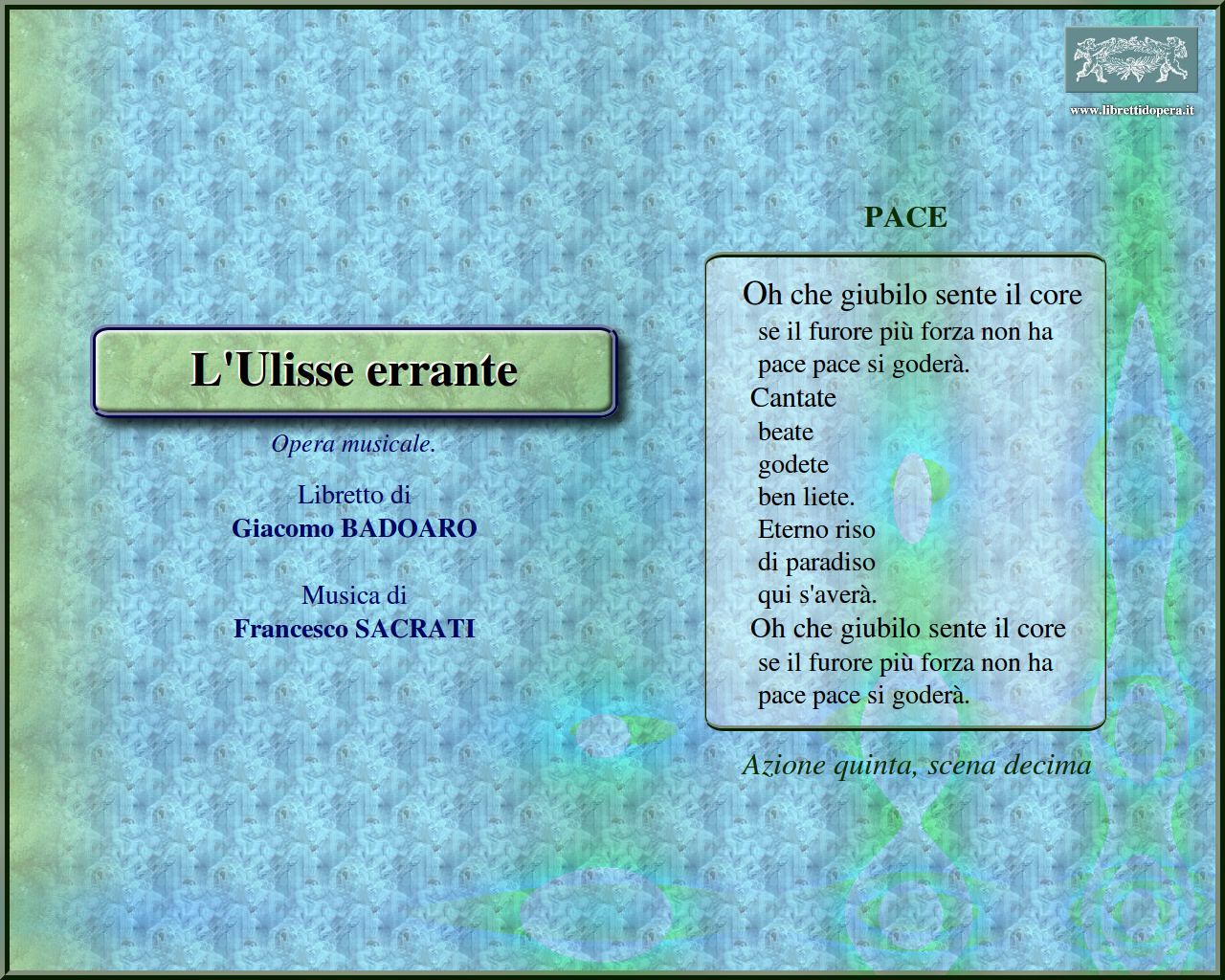 Augelletti sussurrate Ulisse ah non partir, deh non partire Amanti mirate Giove ch'al fato il termine prescrisse Oh che giubilo sente il core