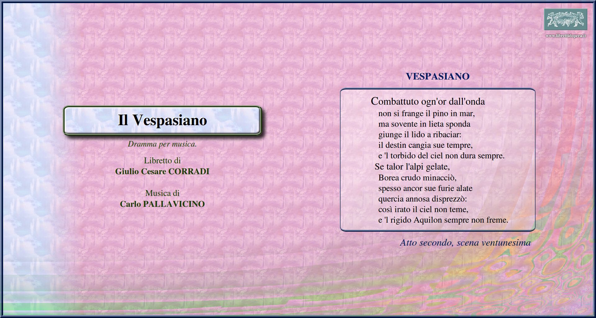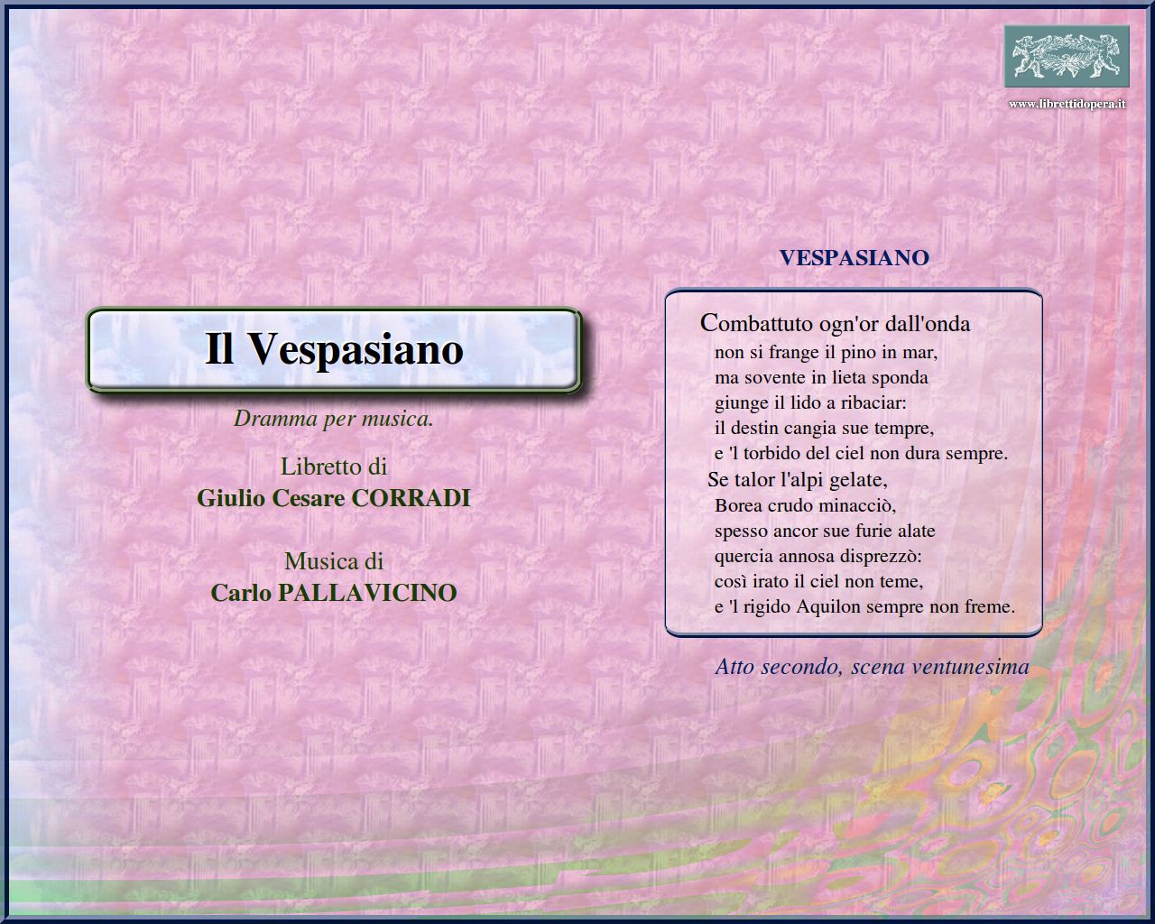 Chi ruba la pace Combattuto ogn'or dall'onda Mentre Vespasiano e Domiziano s'assidono... È un mestier di gran giudizio