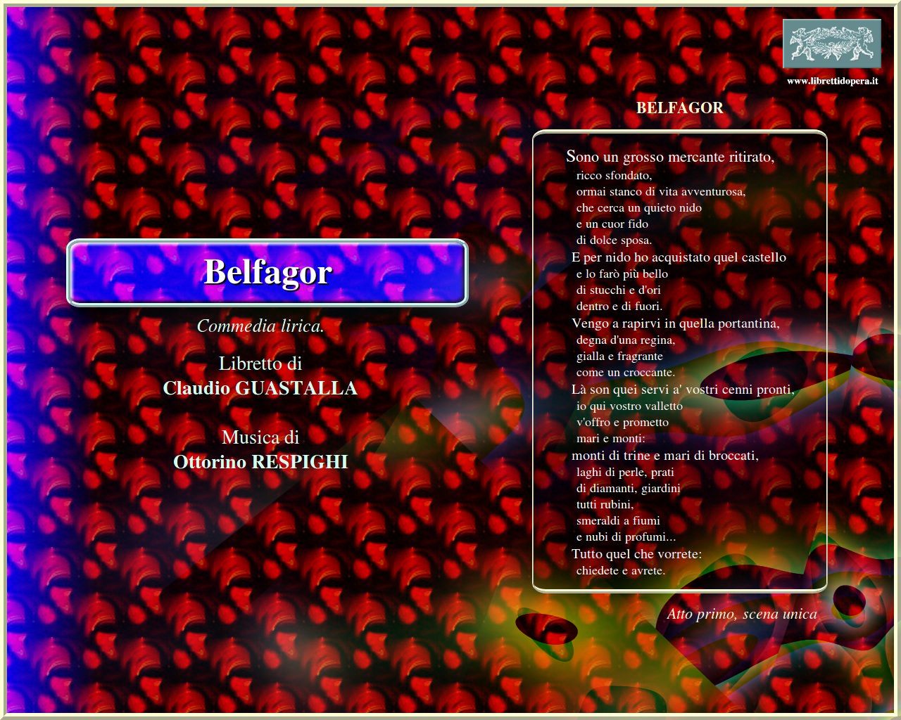 ► Walter Zidaric, Belfagor di Claudio Guastalla e Ottorino Respighi: la vena comica e nazionalistica nel melodramma italiano del primo '900 Chroniques italiennes, n° 77-78 (2-3/2006) Spécial opéra, Parigi, 2006 http://chroniquesitaliennes.univ-paris3.fr/PDF/77-78/zidaric.pdf