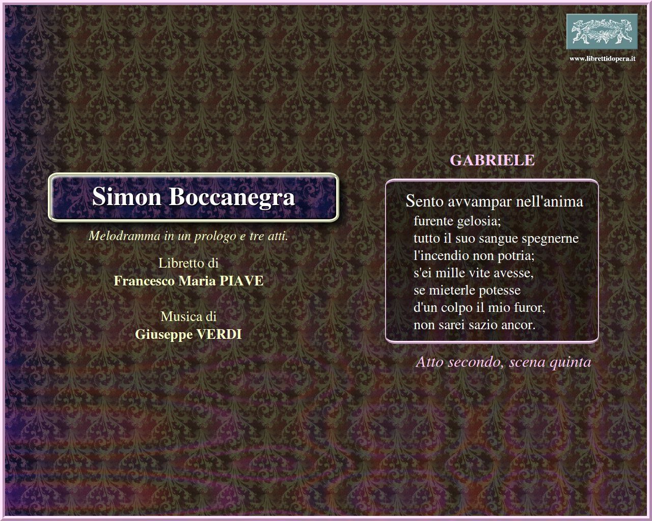 ⚫ […] un tema tanto spesso ricorrente nel teatro di Verdi, […] ma qui reso ancor più fortemente esplicito dai moltiplicati contrasti di personaggi e di situazioni: la crisi del potere e degli affetti familiari. Tuttavia gli esiti di tali conflitti trascendono la vicenda stessa e la fine tragica del protagonista in quanto costantemente protesi verso un messaggio di pace e di amore. Messaggio in cui stanno, in gran parte, le ragioni dell'“attualità” del Simon Boccanegra di Verdi.