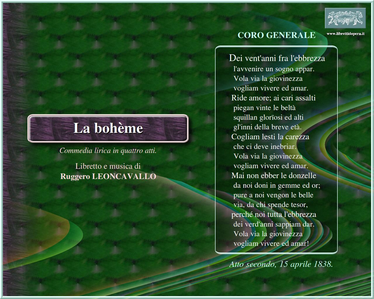 Libretto e musica di Ruggero LEONCAVALLO.
