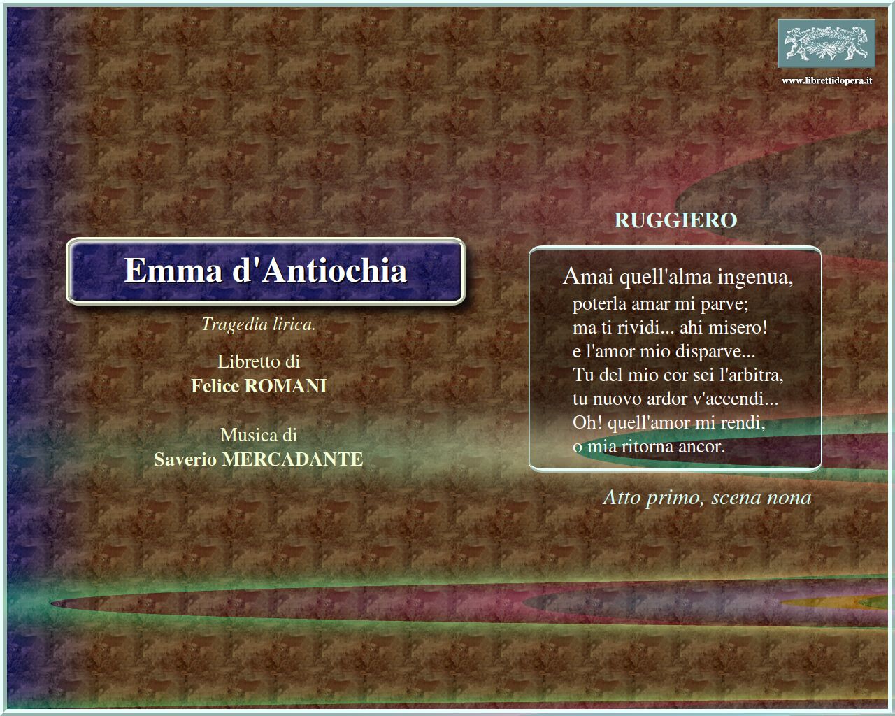 | Giovanni Bracciolini | Bologna, Teatro Comunale | 26 novembre 1838 | con titolo Emma e Ruggero |