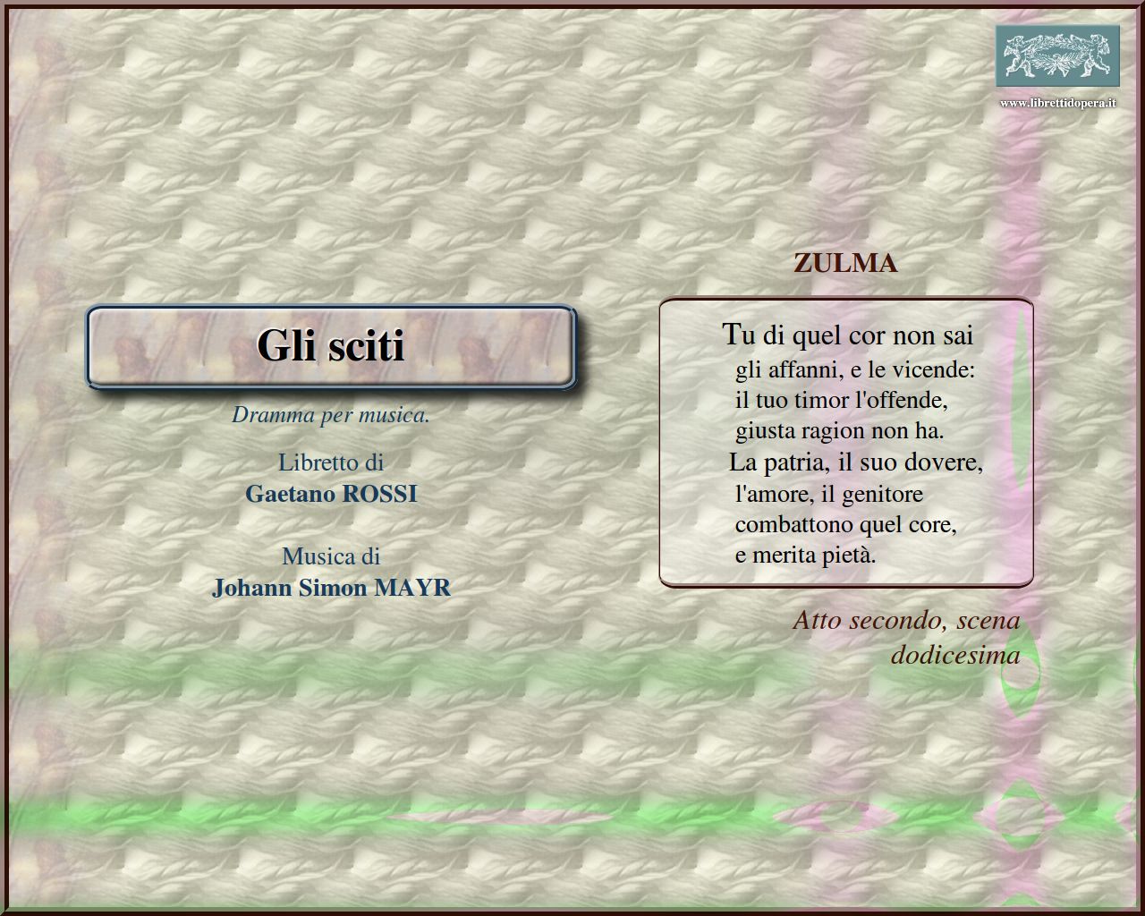 Libretto di Gaetano ROSSI.