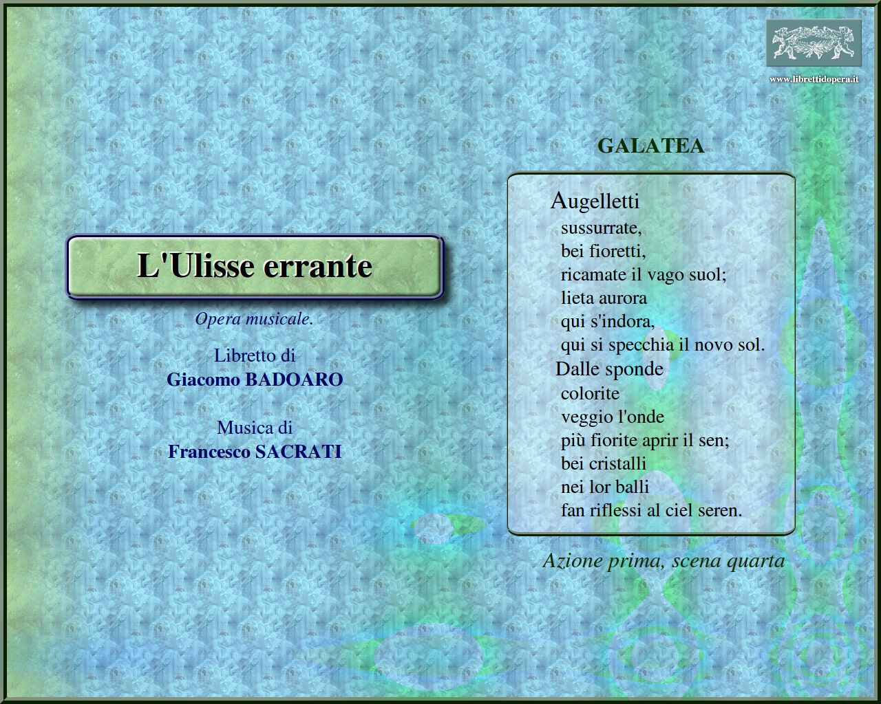 Libretto di Giacomo BADOARO.