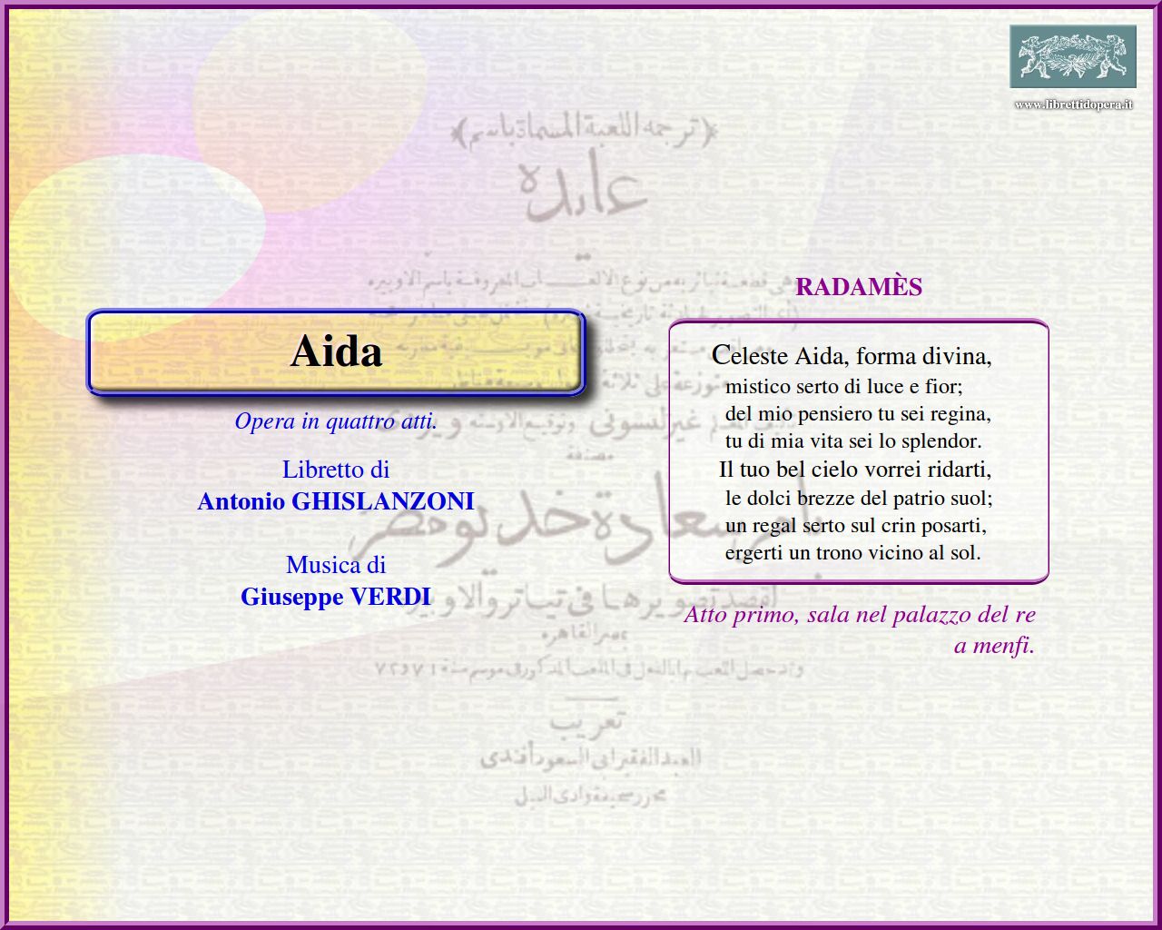 Libretto di Antonio GHISLANZONI.