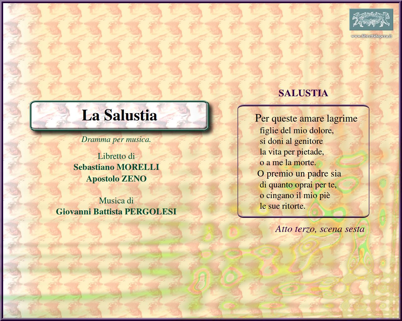 Libretto di Sebastiano MORELLI, Apostolo ZENO.