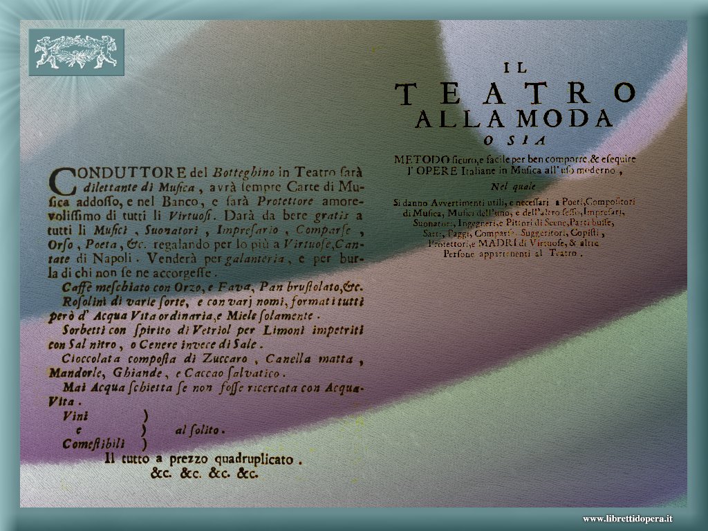 http:// www.librettidopera.it / argomenti e titoli / documento: «Il teatro alla moda», di Benedetto Marcello