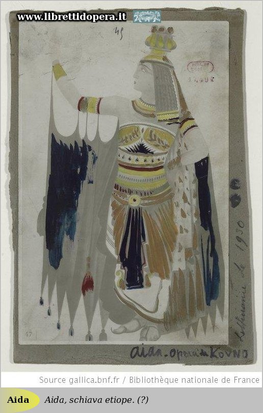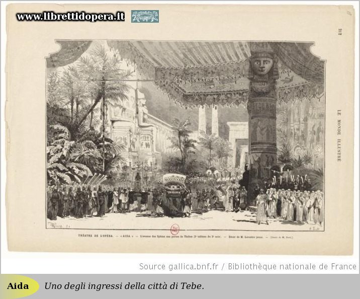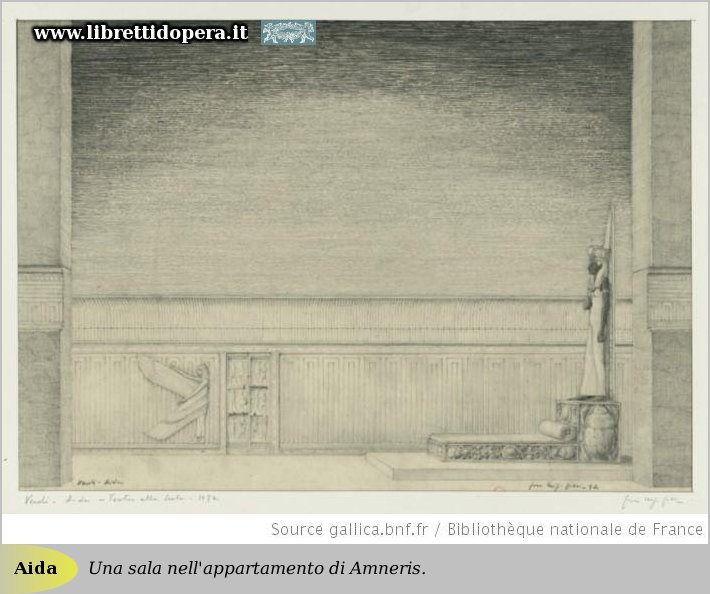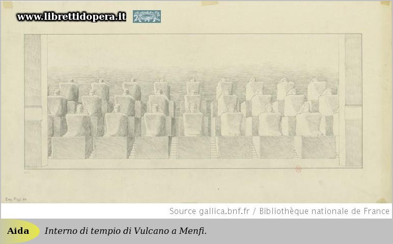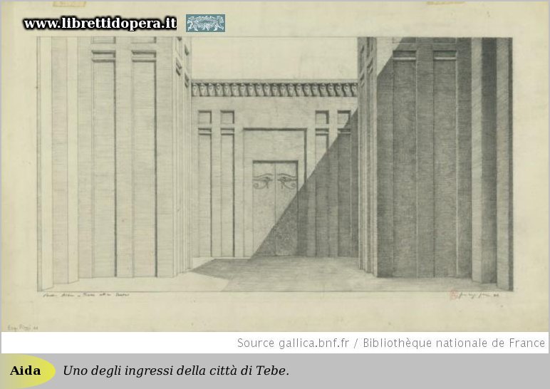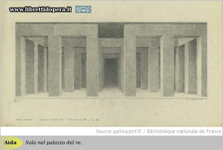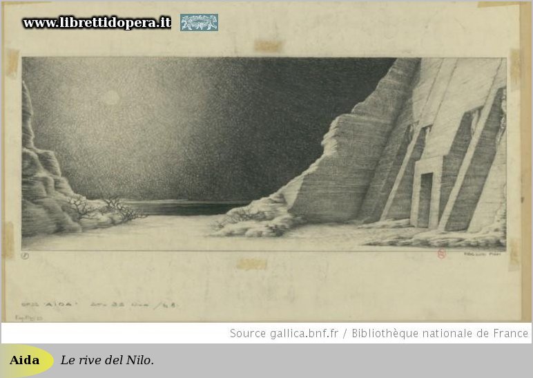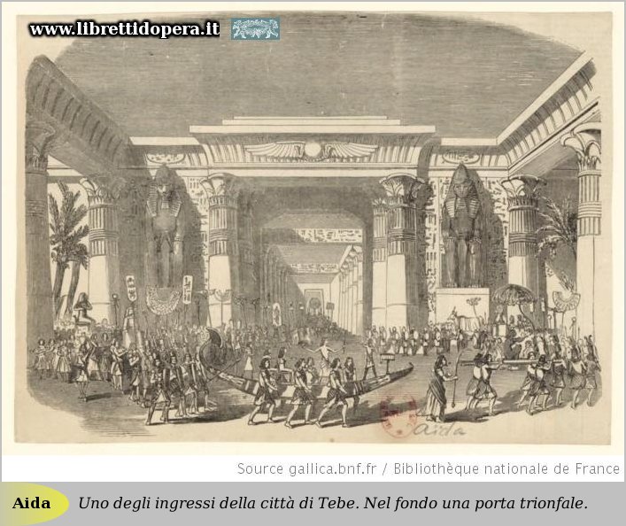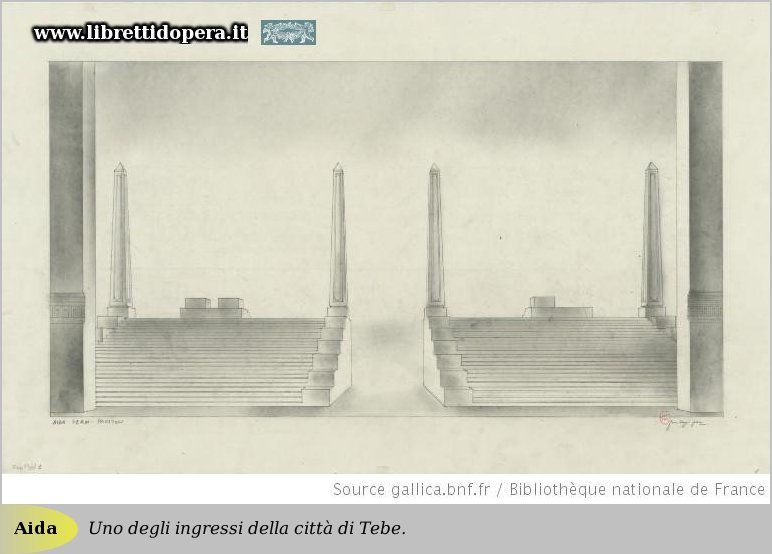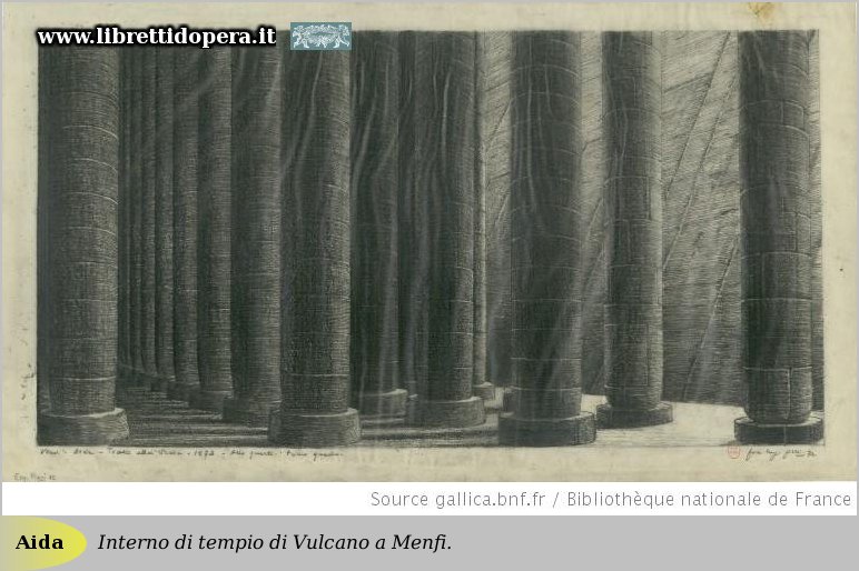 Testi di Antonio GHISLANZONI, musiche di Giuseppe VERDI, anno 1871.