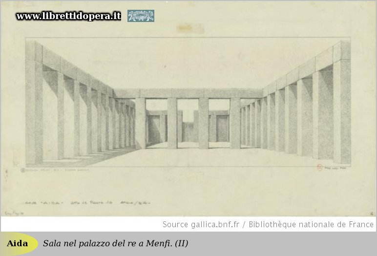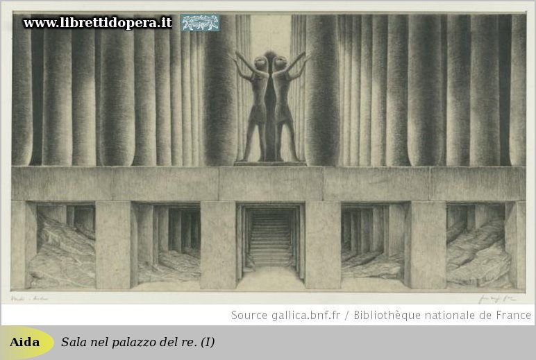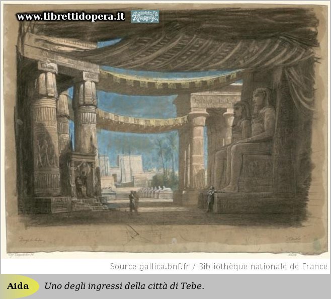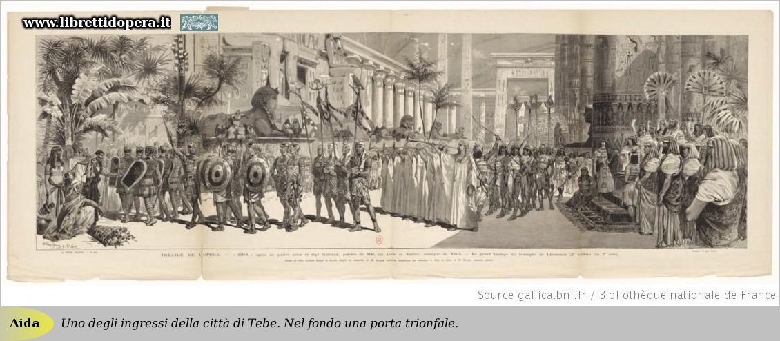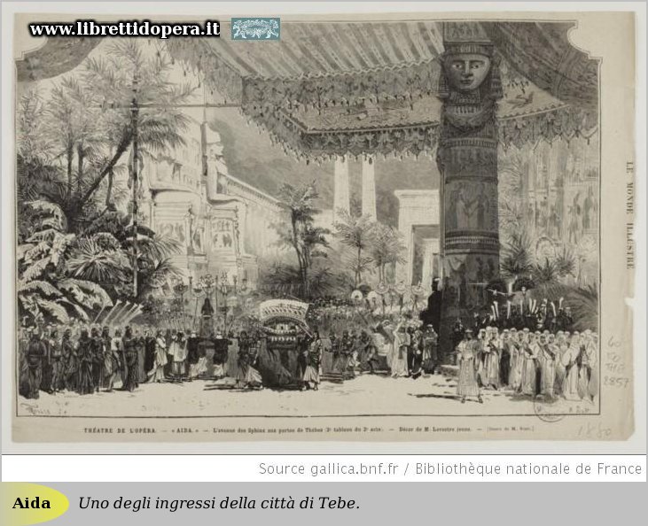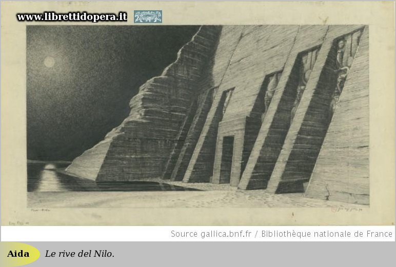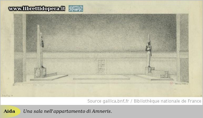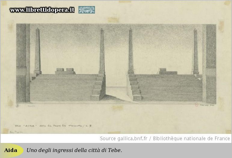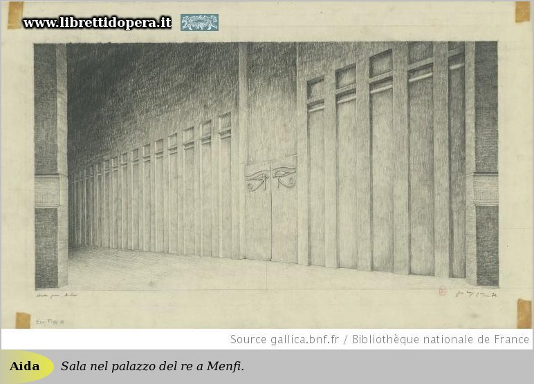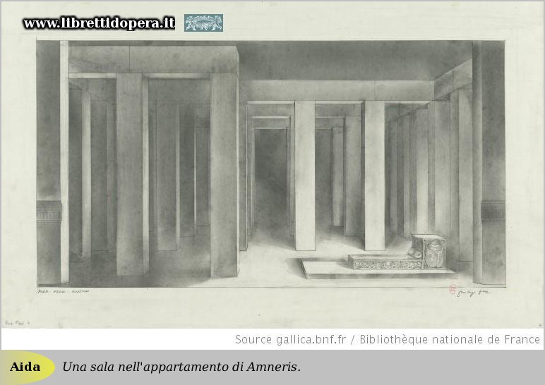 Testi di Antonio GHISLANZONI, musiche di Giuseppe VERDI, anno 1871.