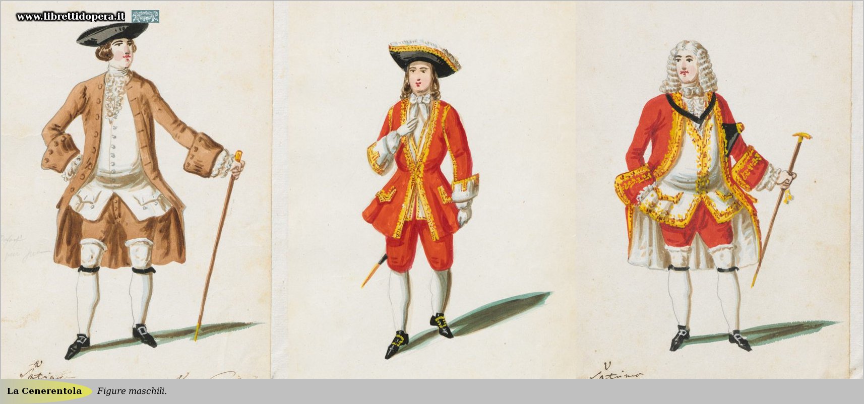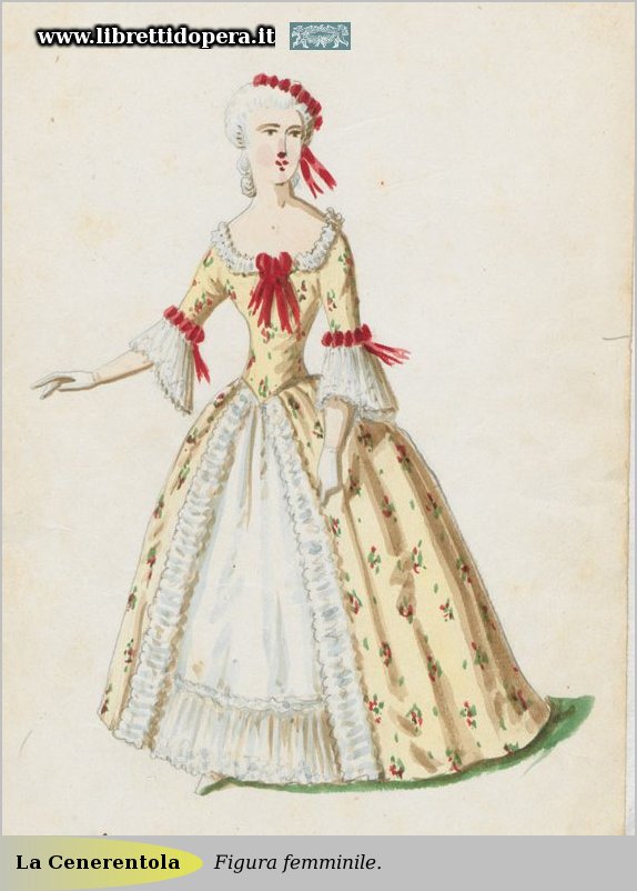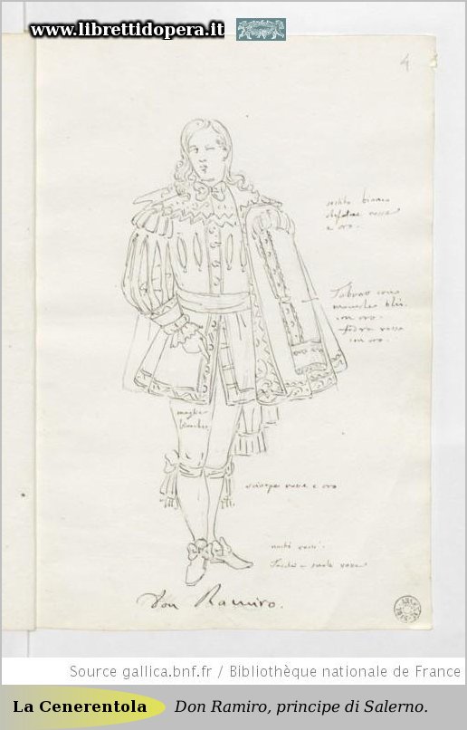 • Figurini per la rappresentazione al teatro S. Carlo, Napoli, 1856 Internet culturale, Biblioteca del Conservatorio di musica S. Pietro a Majella. |