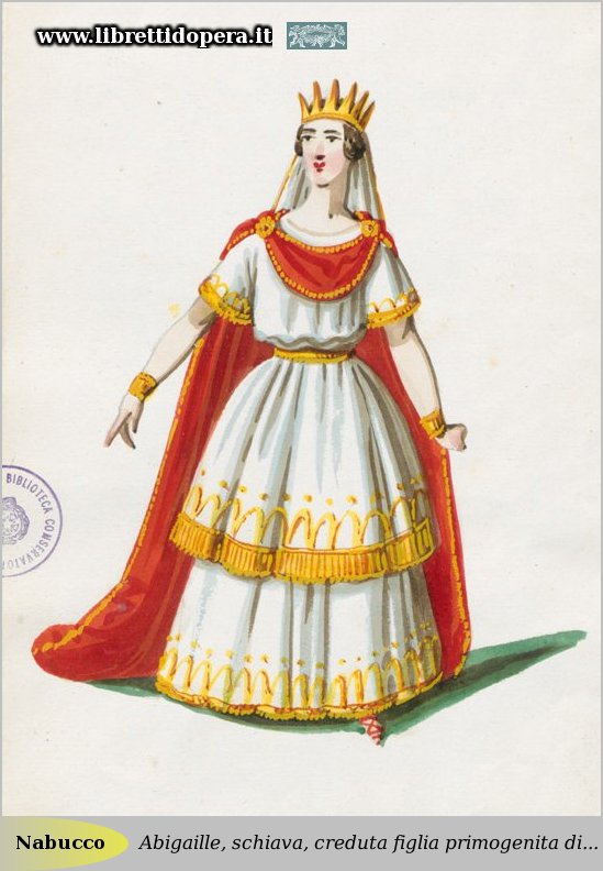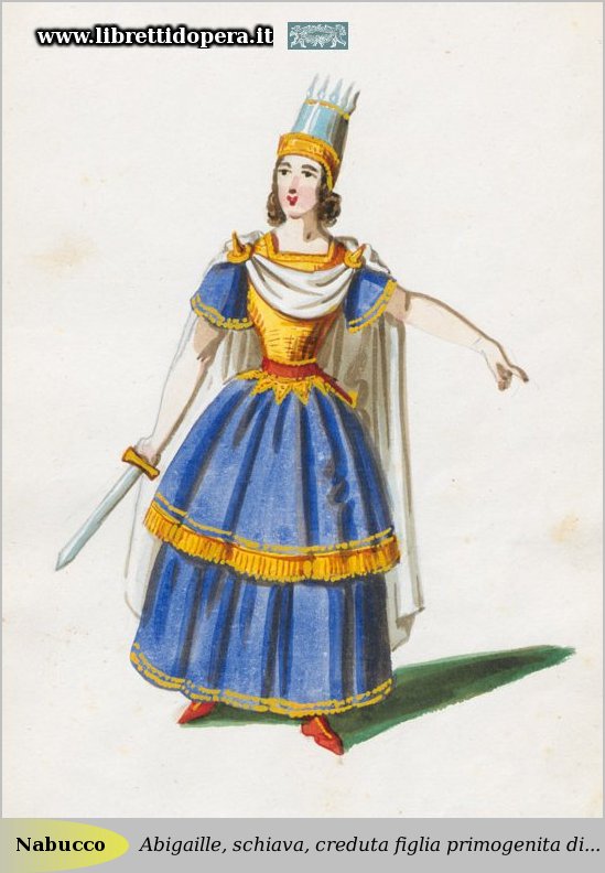 Abigaille, schiava, creduta figlia primogenita di Nabucco. | ![]() |