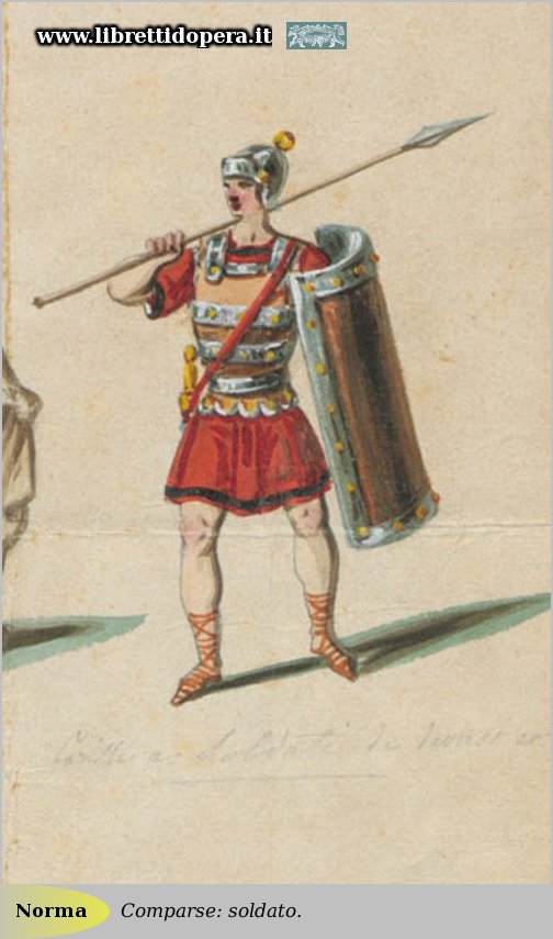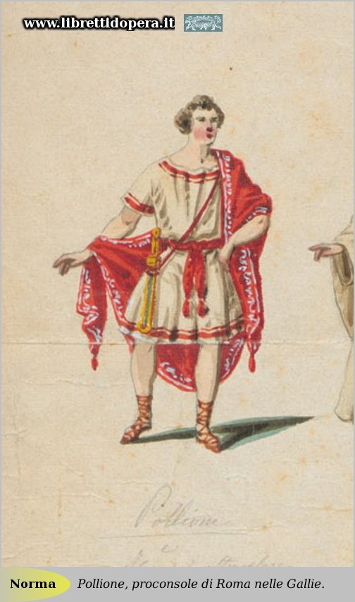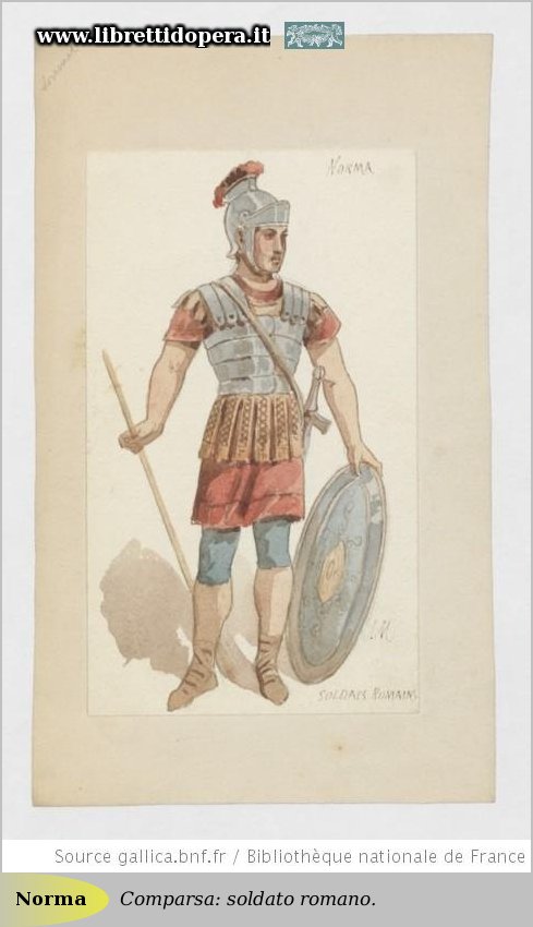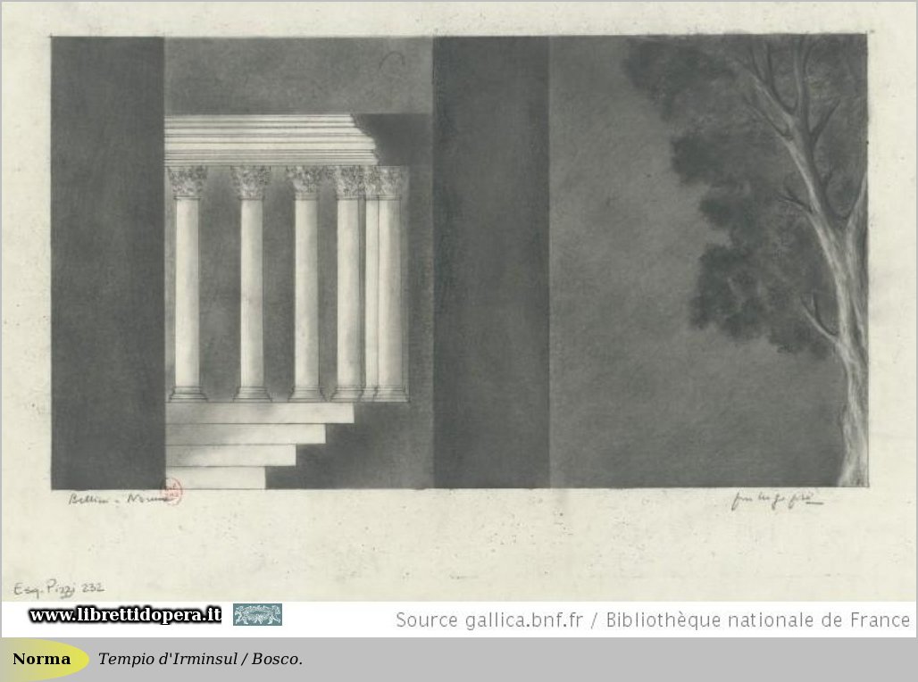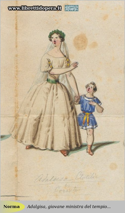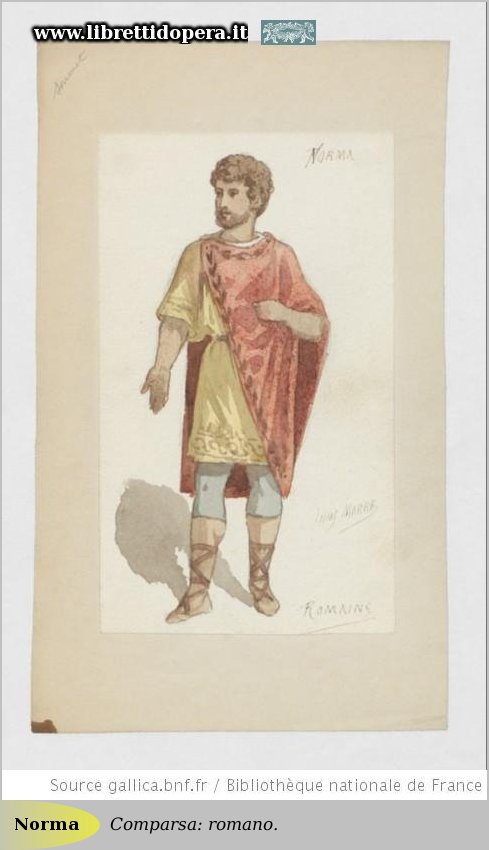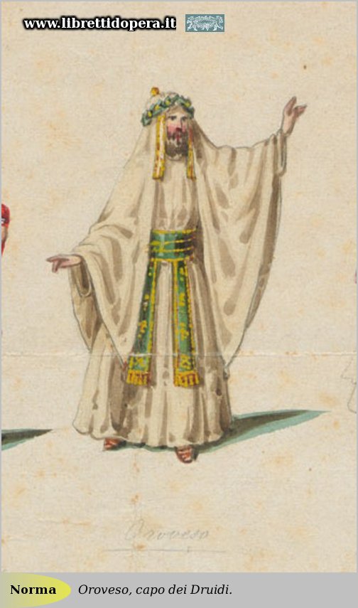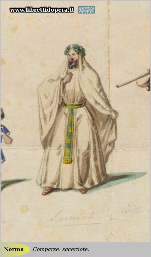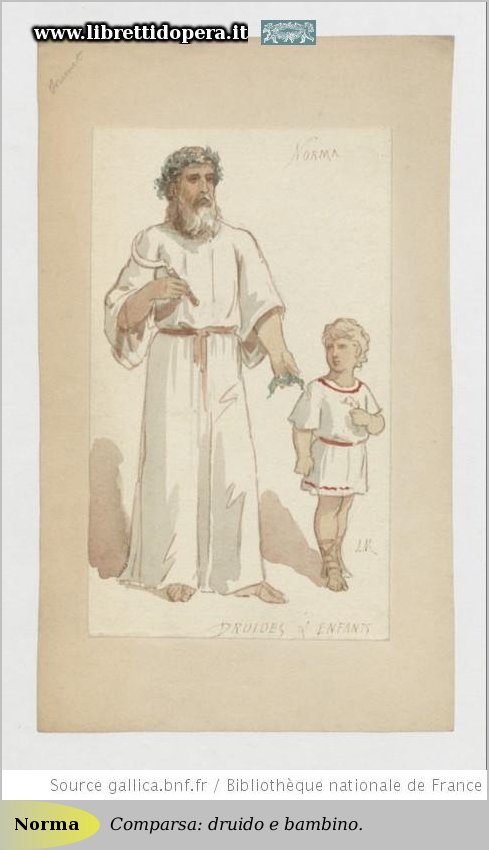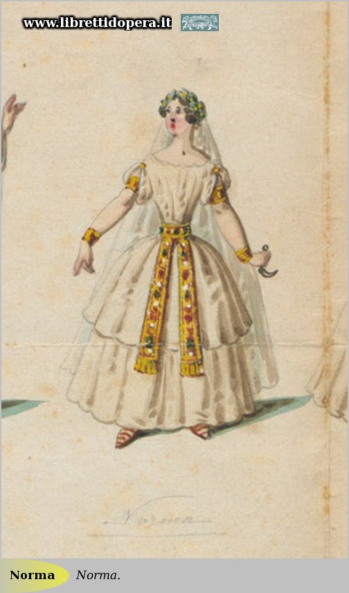 • Figurini per la rappresentazione di "Norma" al Real Teatro del Fondo, Napoli Internet culturale, Biblioteca del Conservatorio di musica S. Pietro a Majella. |