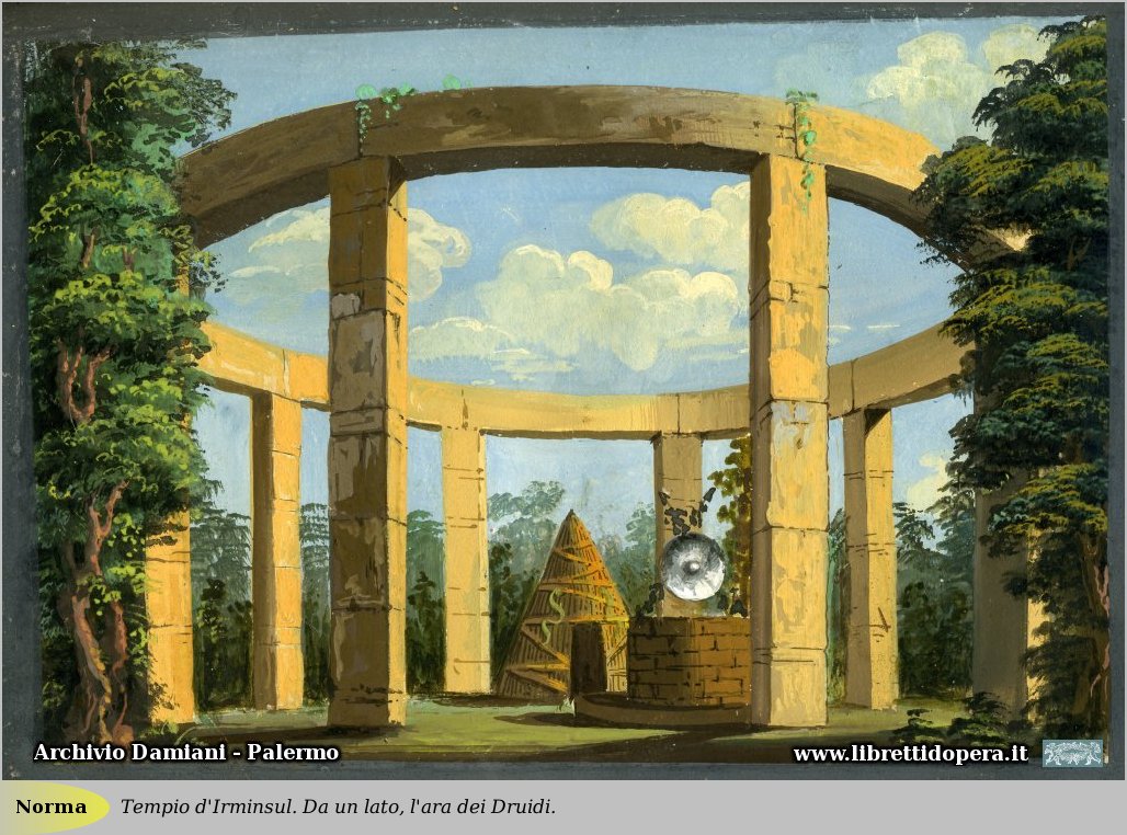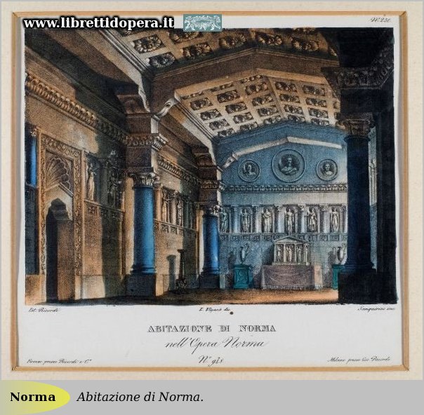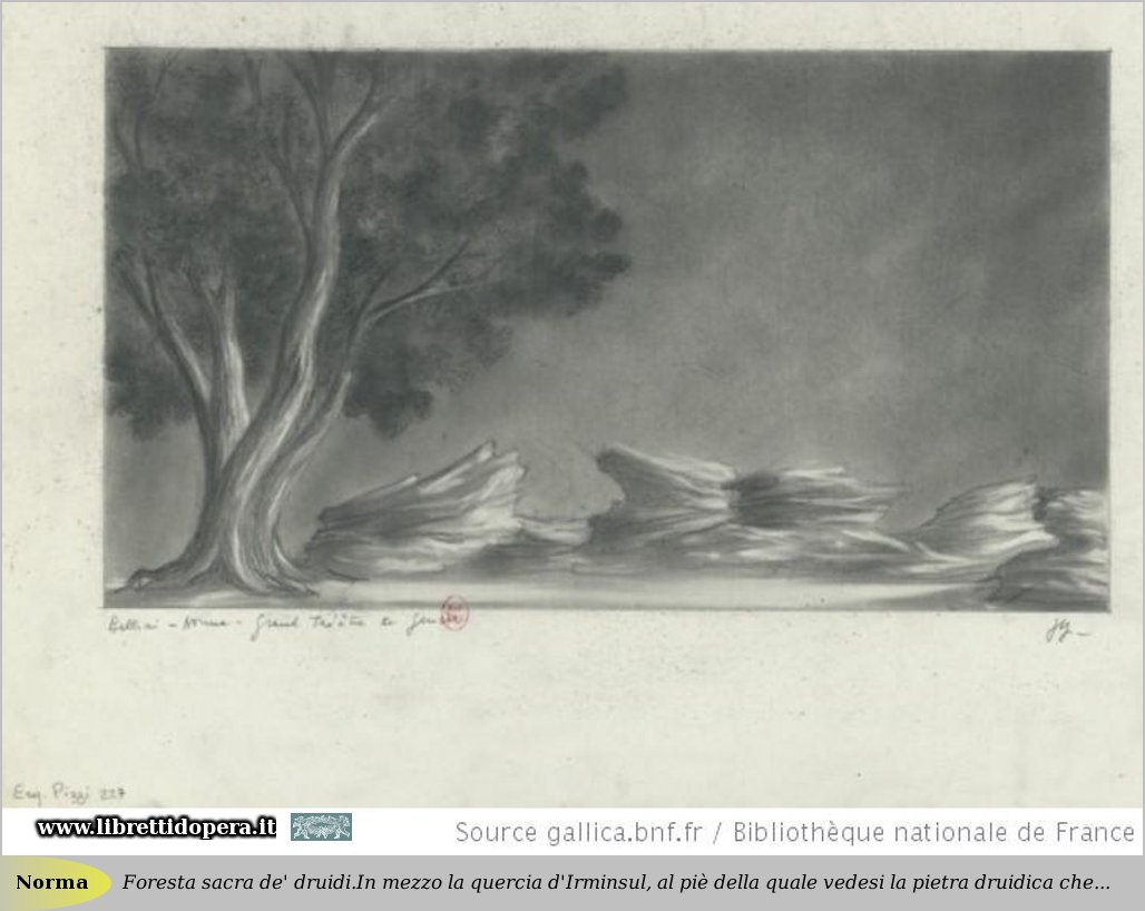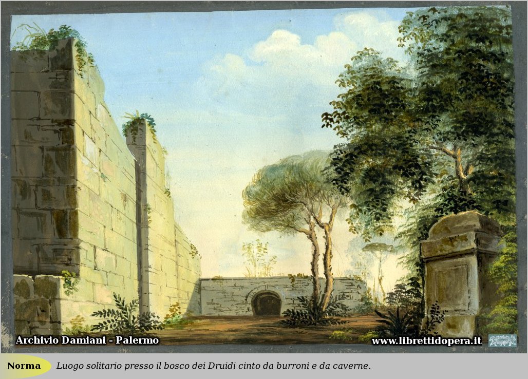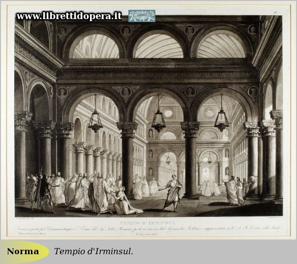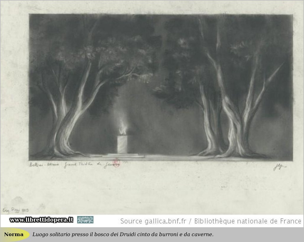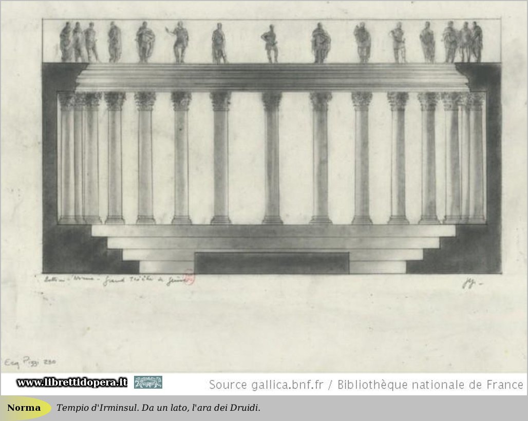 • Figurini per la rappresentazione di "Norma" al Real Teatro del Fondo, Napoli Internet culturale, Biblioteca del Conservatorio di musica S. Pietro a Majella. |