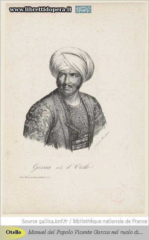 Manuel del Popolo Vicente Garcia nel ruolo di Otello, africano al servizio di Venezia. | ![]() |