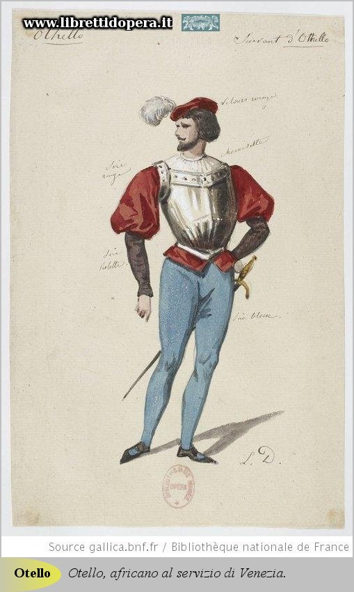 Figurino per Manuel Garcia nel ruolo di Otello, africano al servizio di Venezia. | ![]() |