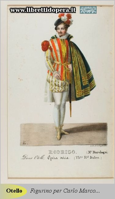 Figurino per Carlo Marco Bordogni nel ruolo di Rodrigo, amante disprezzato di Desdemona. | ![]() |